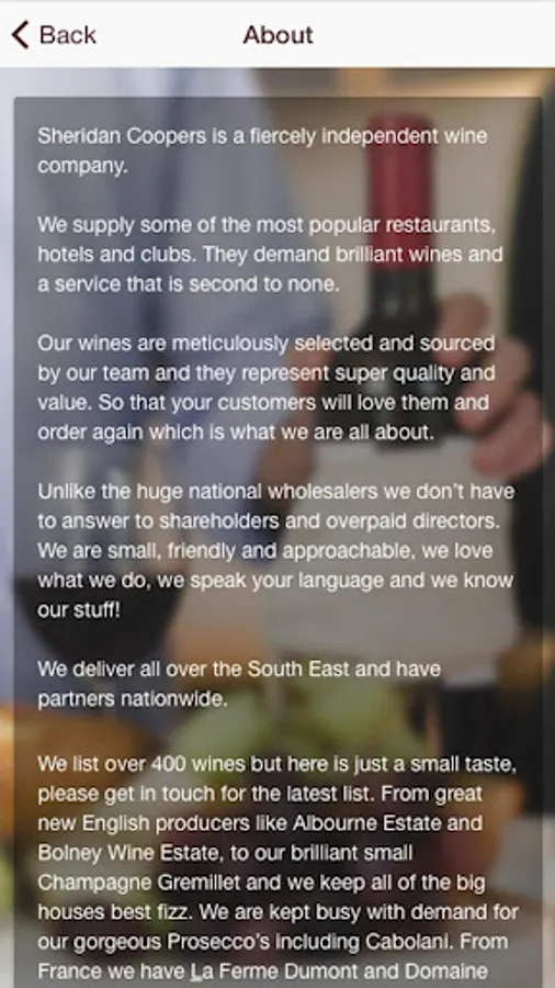 Our wines are meticulously selected and sourced by our team and they represent super quality and value. So that your customers will love them and order again which is what we are all about.