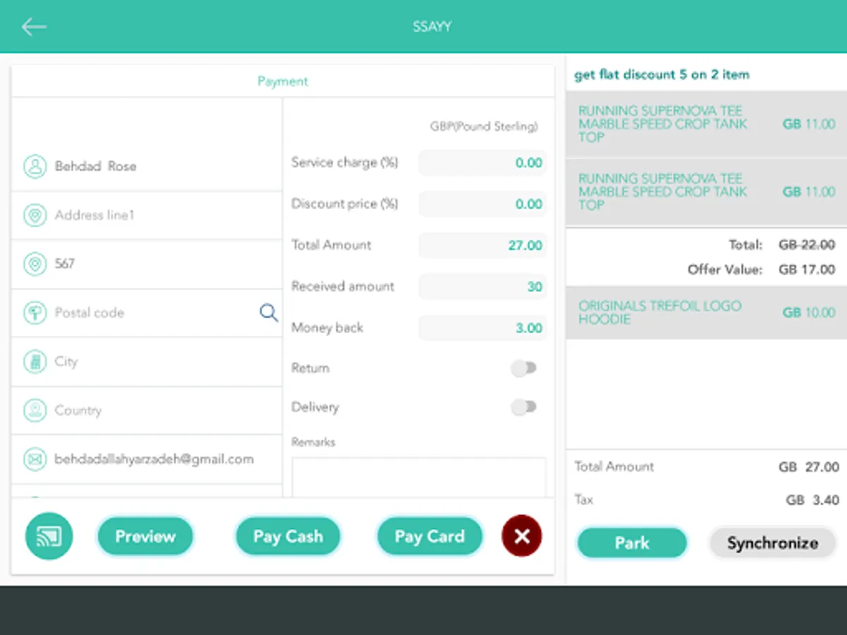 SSAYY Epos offers business’ the opportunity to use state of the art cloud based technology to manage their everyday commerce. Our EPOS system is compatible with both Android and IOS tablets, and supports cloud synchronisation both on and offline, allowing you to always stay in control of your system, no matter where you are.