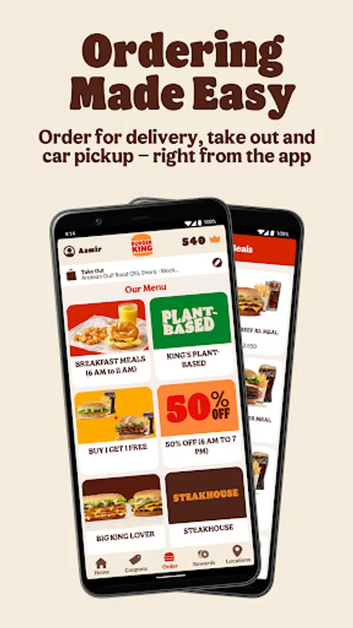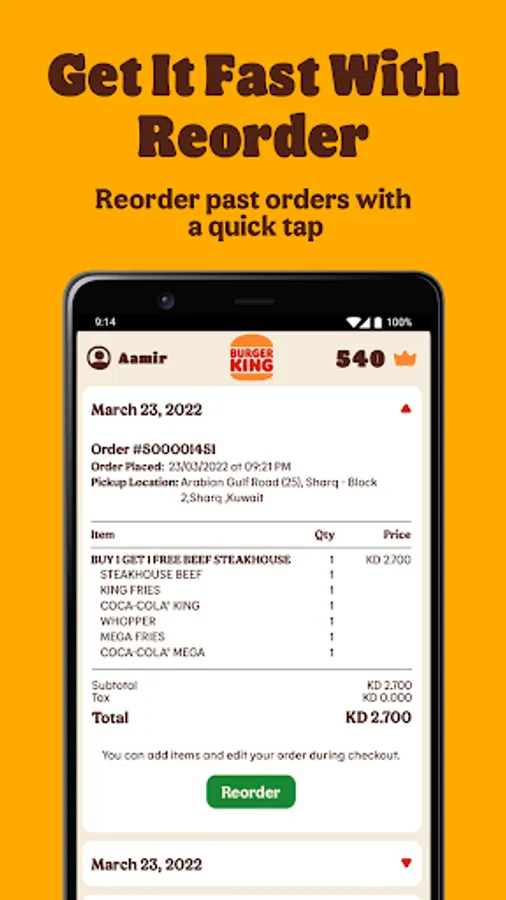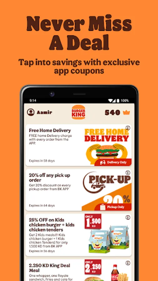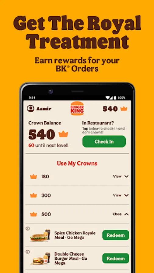 Get the royal treatment when you use the app! Be sure to sign in and earn Crowns with every order. Then redeem your Crowns for free food and drinks at participating BURGER KING® restaurants across Kuwait.