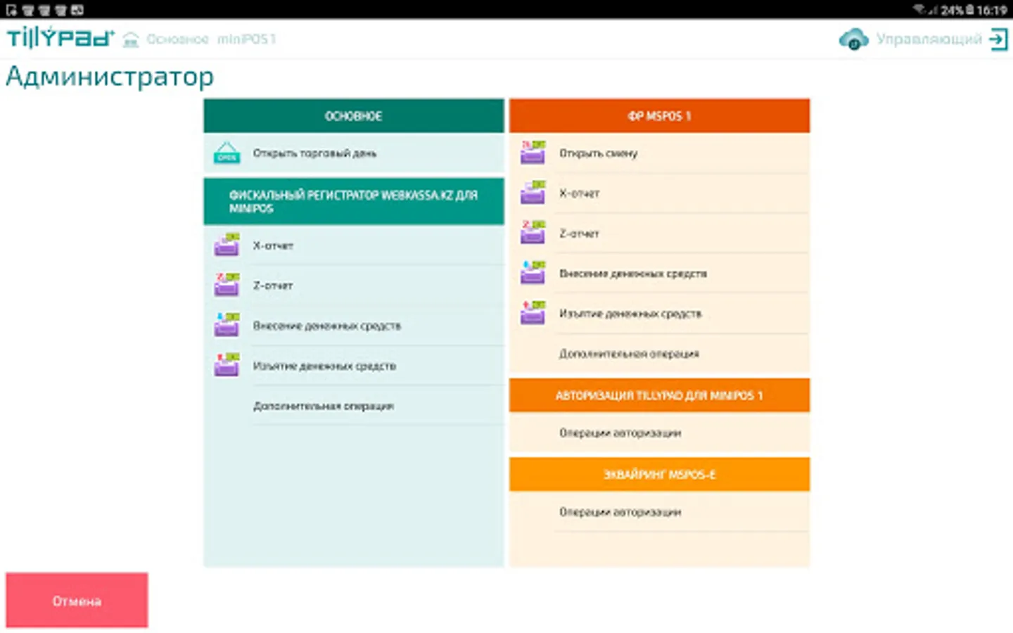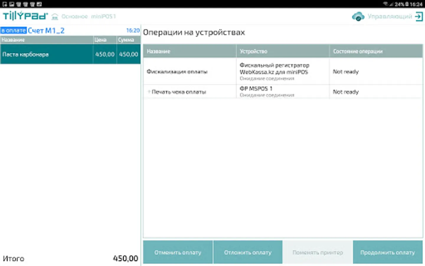 Tillypad device driver for MiniPOS program operation with Webkassa.kz online fiscalization service. Works with MiniPOS 1.15 and higher.