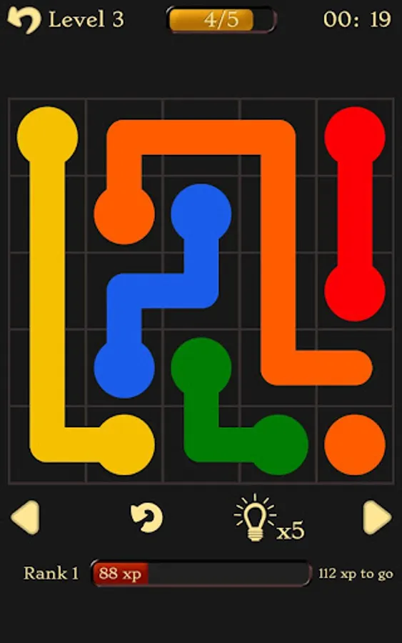 Then, select the first level of the pack and starts to connect the dots. you need to link dots of the same color with a single line. However, make sure you create the line in a way that will not prevent connecting other dots with lines as well. When you complete connecting all pairs, you have completed the level! well done!