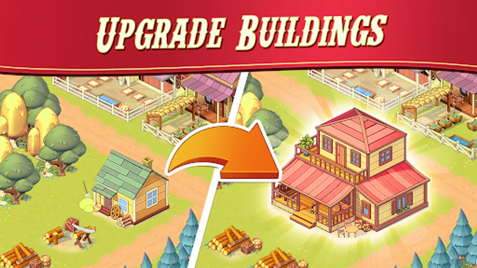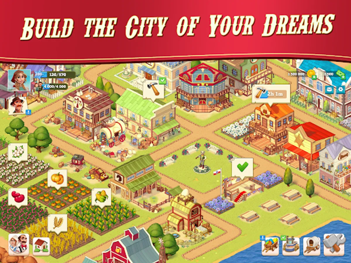 Create the town of your dreams in this town-building simulator game! Start with building marketplaces, shops, and saloons on your own land. Upgrade with a port, rail station, museum, or even a university for your villagers. Arrange and rearrange your layout. Add decorations, design, upgrade and monuments to make your town beautiful. As you level up, new buildings are unlocked, opening exciting new possibilities. With hard work and creativity, you can truly build the Independence of your dreams!