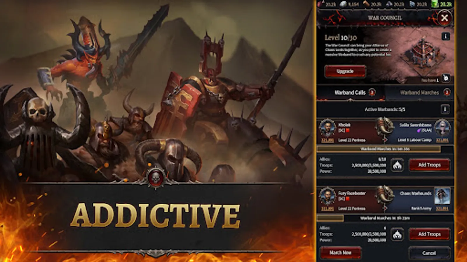 - Design your troops - Upgrade Warlords, chaos champions, with a great assortment of equipment, vanquish and champion skills - Build a diverse strategy and deadly army! Research skills to expand your military!