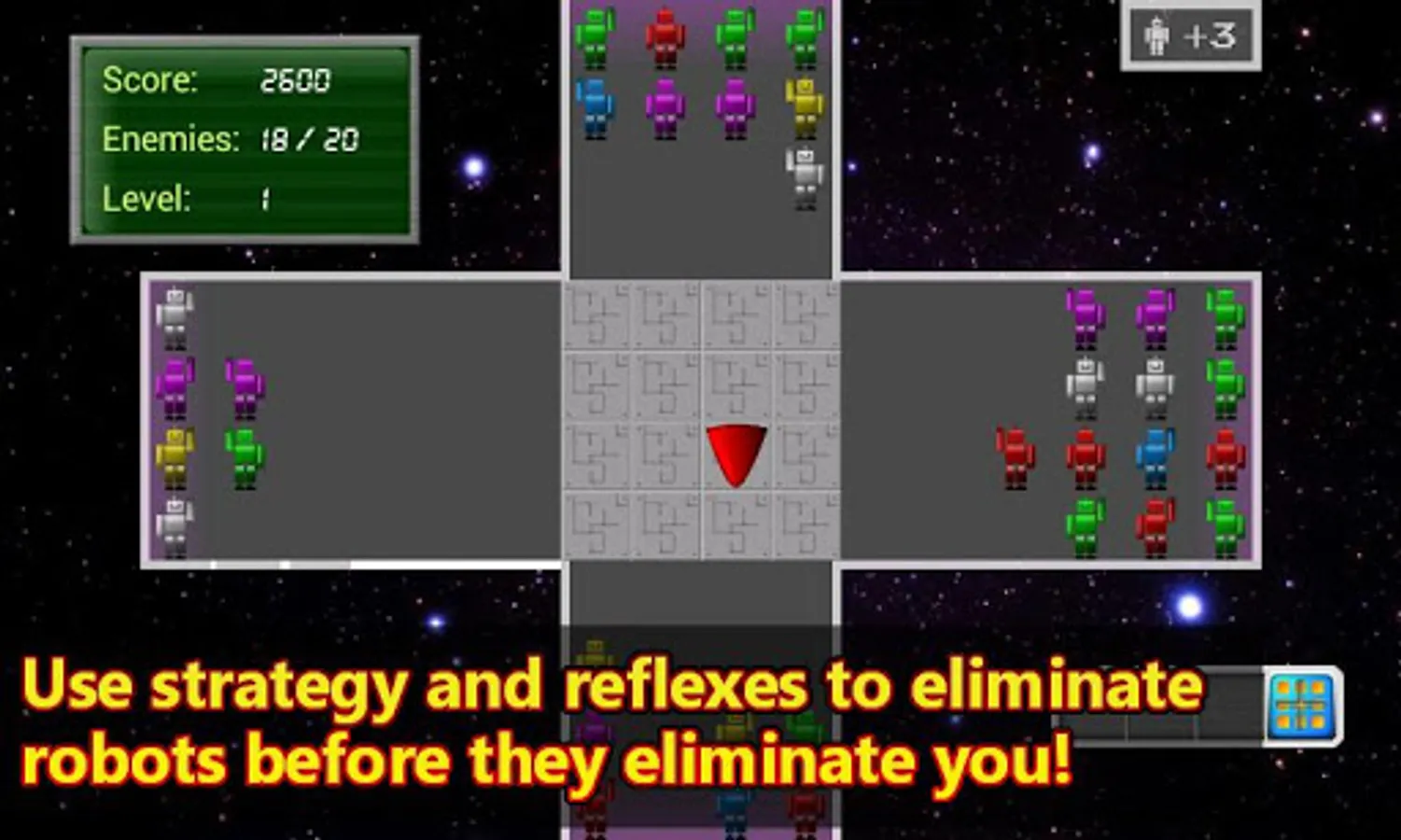 Watch out, robots are invading! Use strategy, quick-reflexes, and powerful bonuses to eliminate robots that are closing in on you from all sides, before they eliminate you. If you like playing fun, exciting, fast-paced games, you need to try this one!