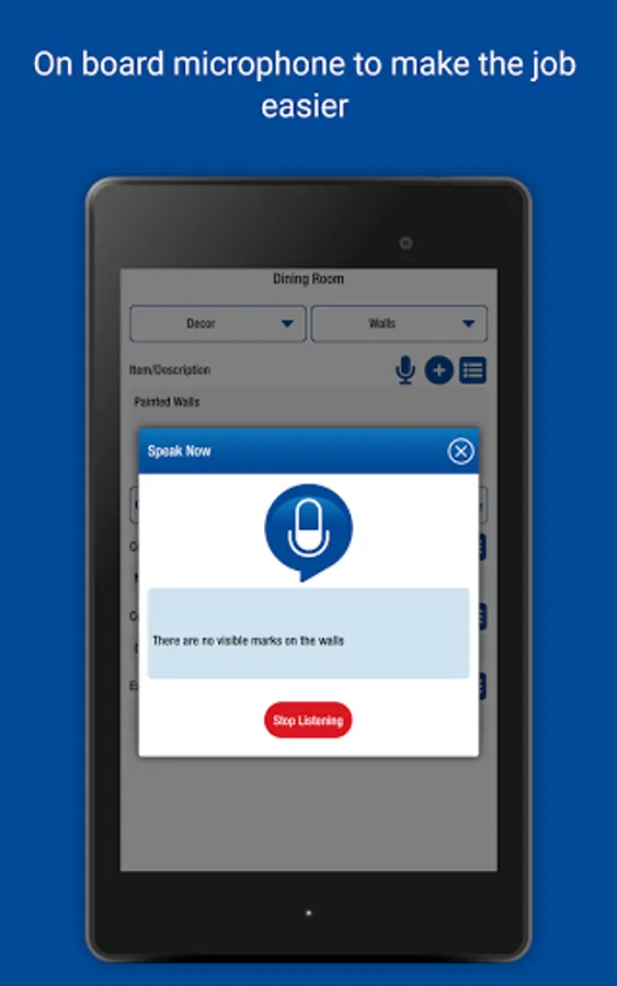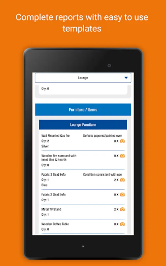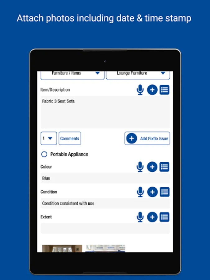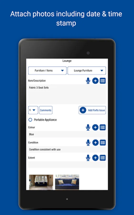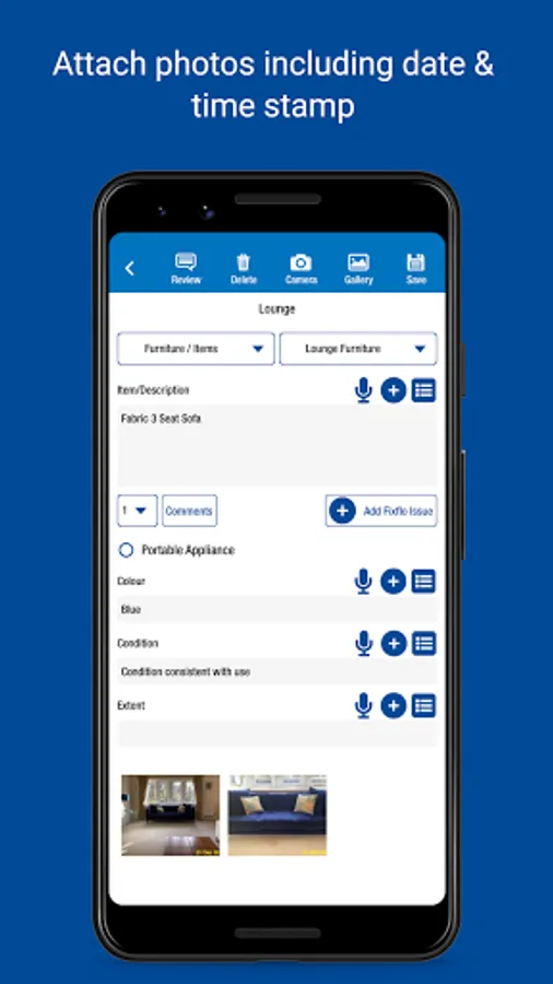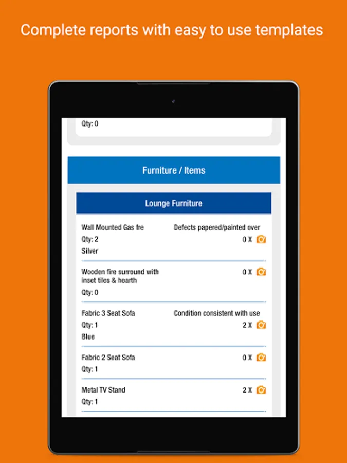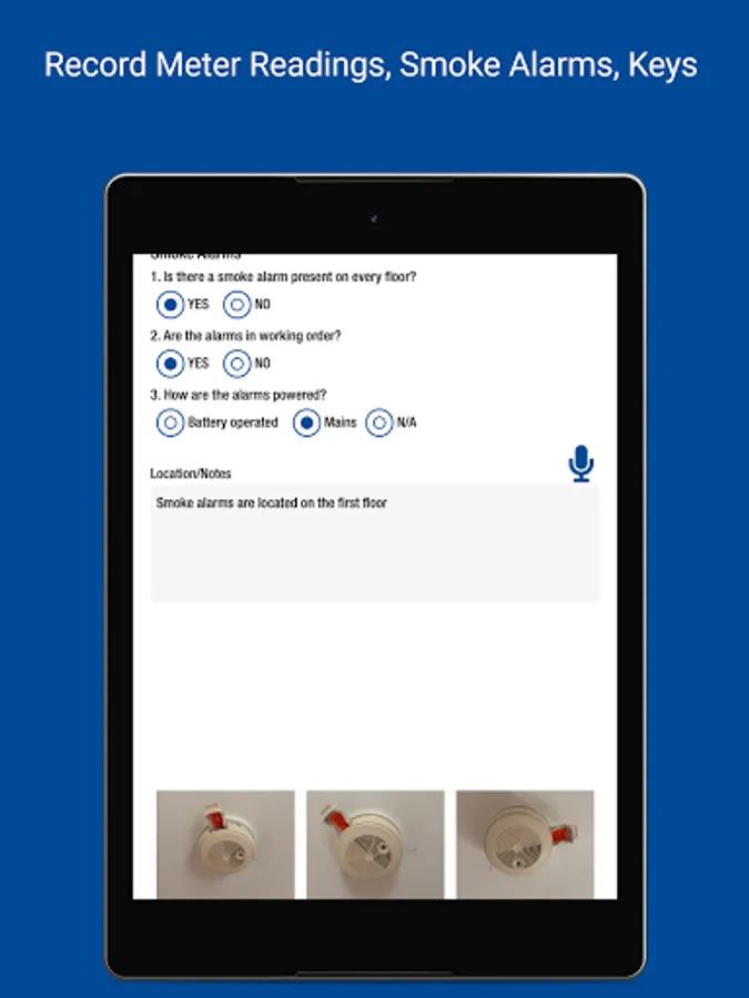 • Record items and conditions - type in answers and save for future use
