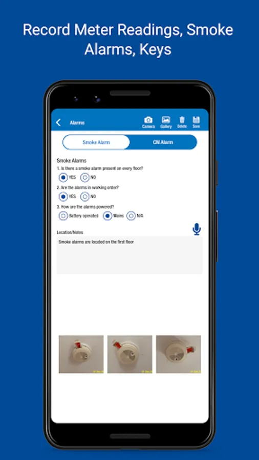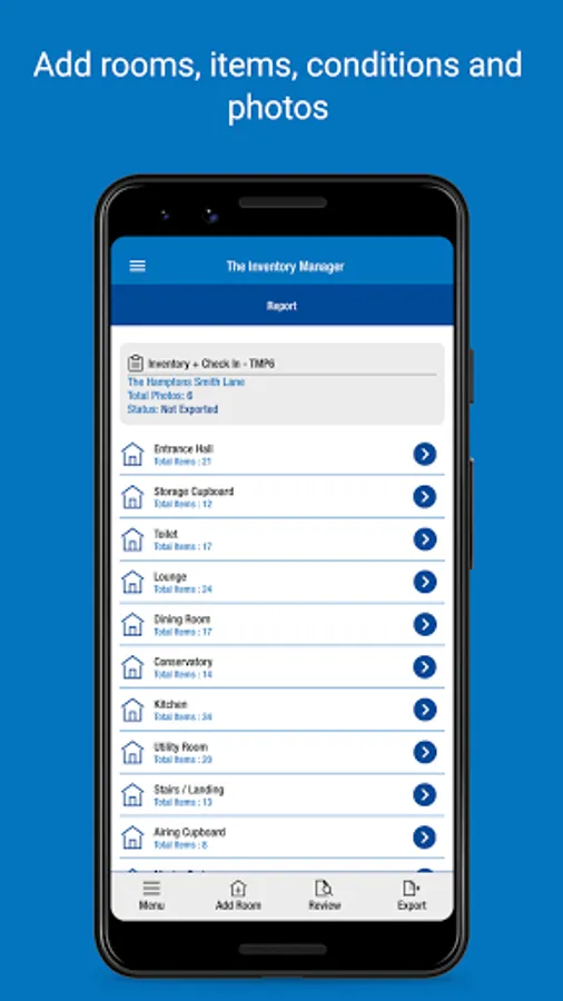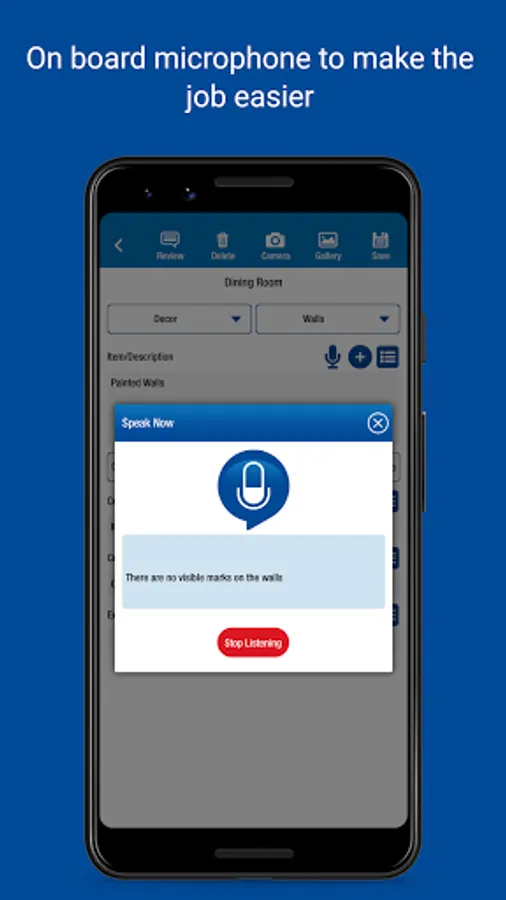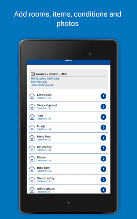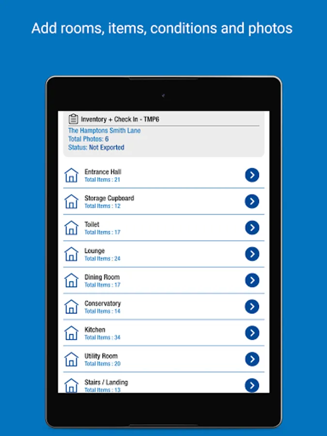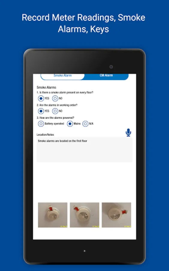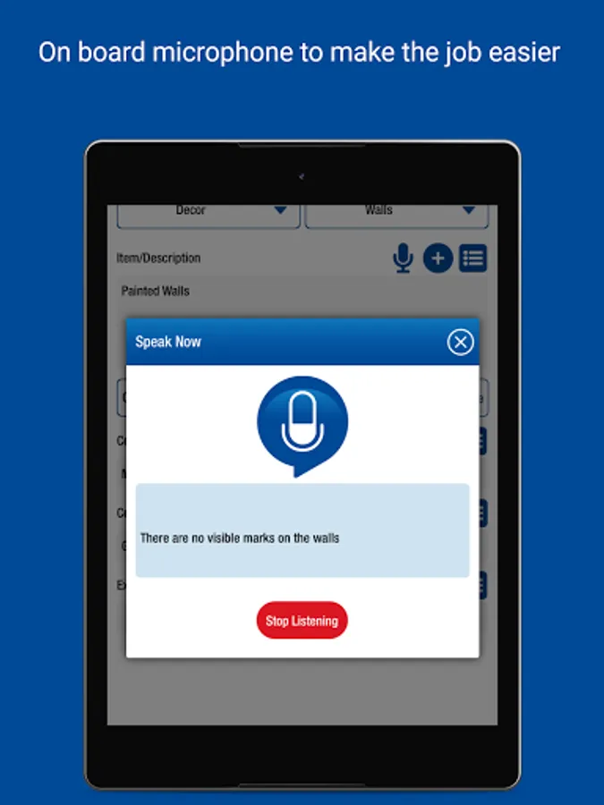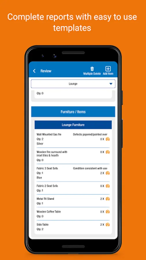 • Record items and conditions - type in answers and save for future use