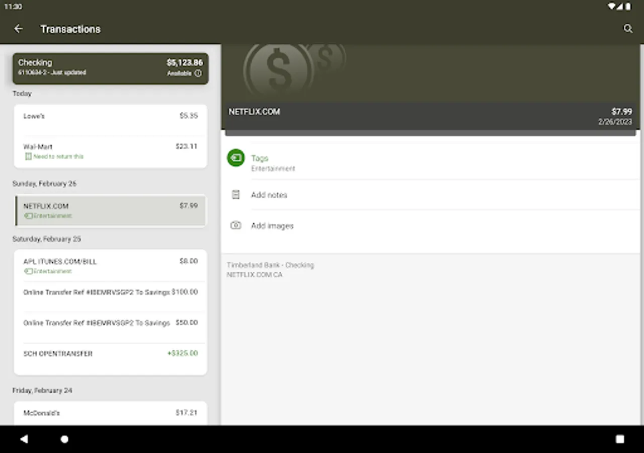 Keep your transactions organized by allowing you to add tags, notes and photos of receipts and checks.