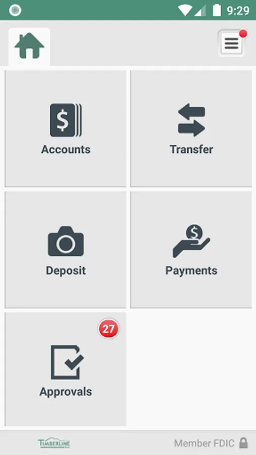 Getting started is easy. Simply download the app and sign on with your Business Online user credentials. No fees charged for downloading the app, but some services may incur bank charges. For more information about Timberline Bank mobile services, please visit www.timberlinebank.com or call us at 800-331-3757.