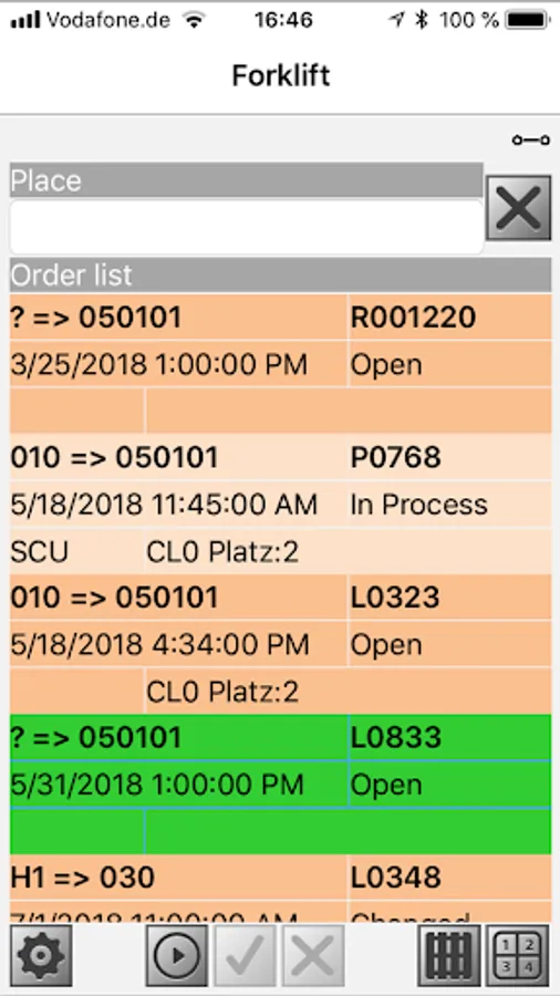 Warehouse management module for the forklift. A communication platform between the forklift driver and the operations employee. The Forklift driver receives internal transportation information of goods. The transportation orders can be released manually through the stock info of the central system and through the forklift driver on the terminal or handheld. Or automatically at the measuring line and the grading line.