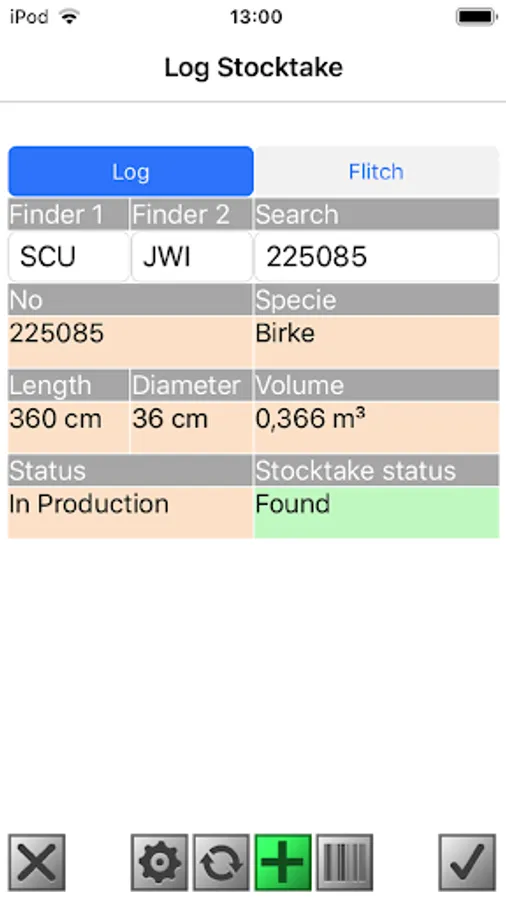 This App is for the stocktaking of Timber Logs. The App synchronises with your TIMBERplus system to retrieve stock data. Search logs by scan which automatically selects the scanned data as found, or search logs by manual input.