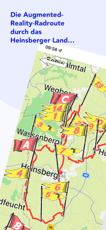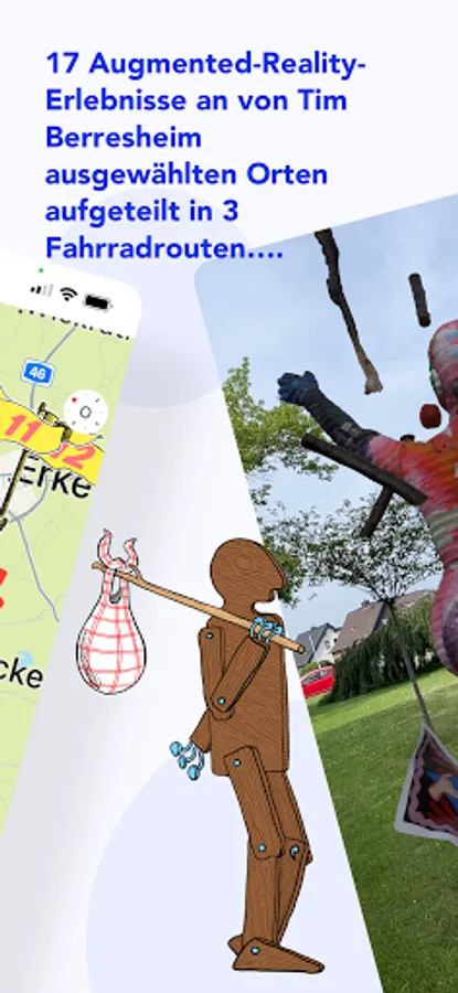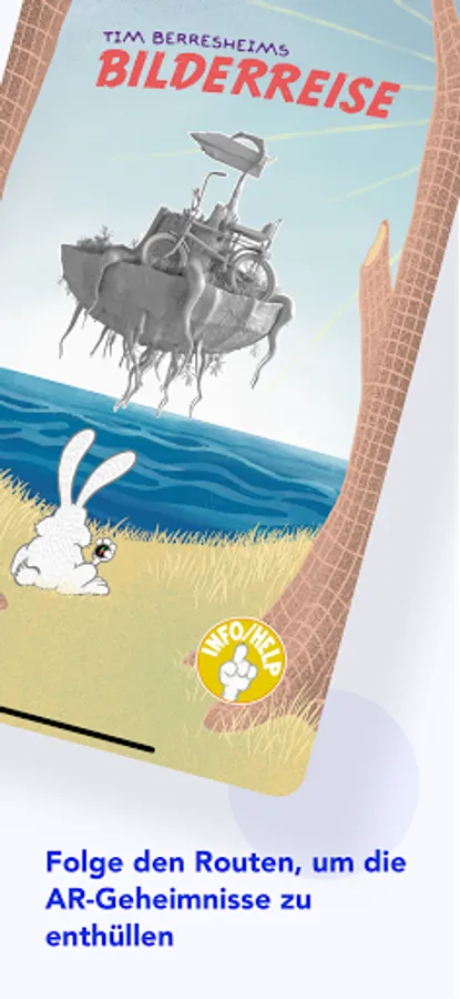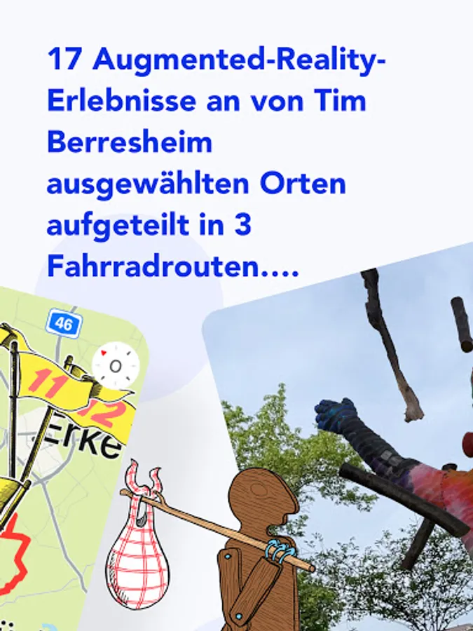 Tim Berresheim's picture journey - the augmented reality cycle route through the Heinsberger Land Welcome to the Heinsberger Land, where the landscape is wide and the horizon is infinite. Here, in the westernmost corner of Germany, nature and culture meet, connected by a more than 550 km of well-developed cycle path network with a junction system. Tim Berresheim's journey through pictures is integrated into this intuitively navigable route network and is up to 90 km long. There is a choice of a scenic circular route as well as its division into a west (approx. 51 km) and an east loop (approx. 45 km). Here, the historical surroundings merge with concise contemporary art, which was created using the latest technology - in a way that has never been seen before. “TB - Bildreise AR” extends reality by at least 17 augmented reality experiences at locations selected by Tim Berresheim. Along the route there are many computer-animated works by the digitally working artist to discover and walk through. If you follow the route and enter the blue-colored radius of an augmented reality object, the app shows which work of art is nearby. The object is activated by tapping on the hint. If you touch the button with a rabbit's paw and a brush, you can take photos or make short films that can be saved directly on the device. The tutorial video with John Lemon offers even more information about the possibilities for using this app. It also explains how you can gain your first augmented reality experience - even without being on site. The app's route map, together with a free pocket guide, helps you find your way around the bike (the online version can be found on heinsberger-land. de) and signposted signposts along the individual sections: Tim Berresheim, his Studios New America and the whole of Heinsberger Land wish you a lot of fun cycling and discovering the hidden works of the pictorial journey.