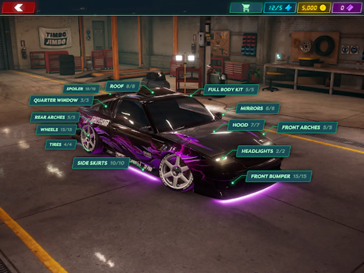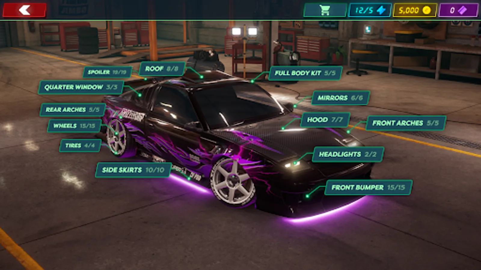 ● Install upgrades to increase the performance of your car and help you dominate your rivals.