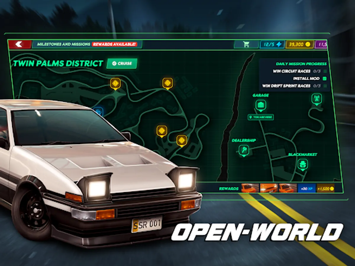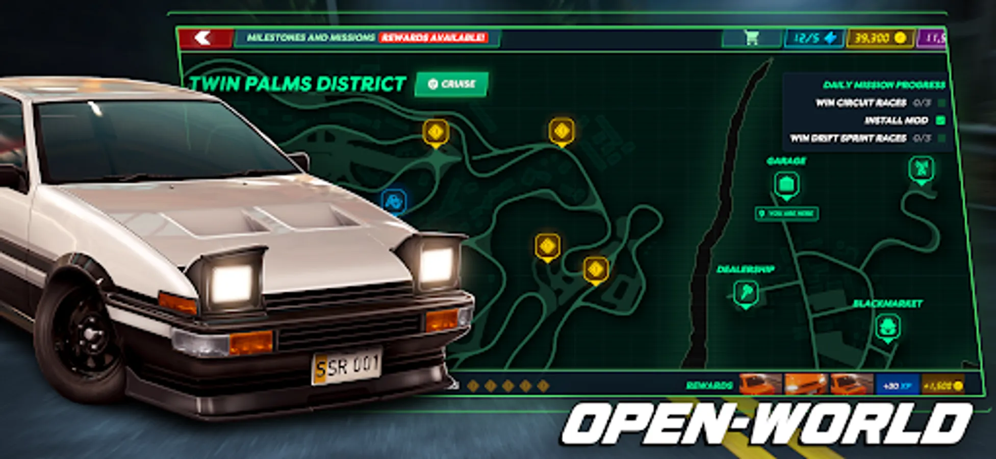 Challenges scattered throughout the world allow you to demonstrate your driving ability, from drift-based challenges to time trials. Static Shift Racing’s unique mix of activities will keep you entertained.