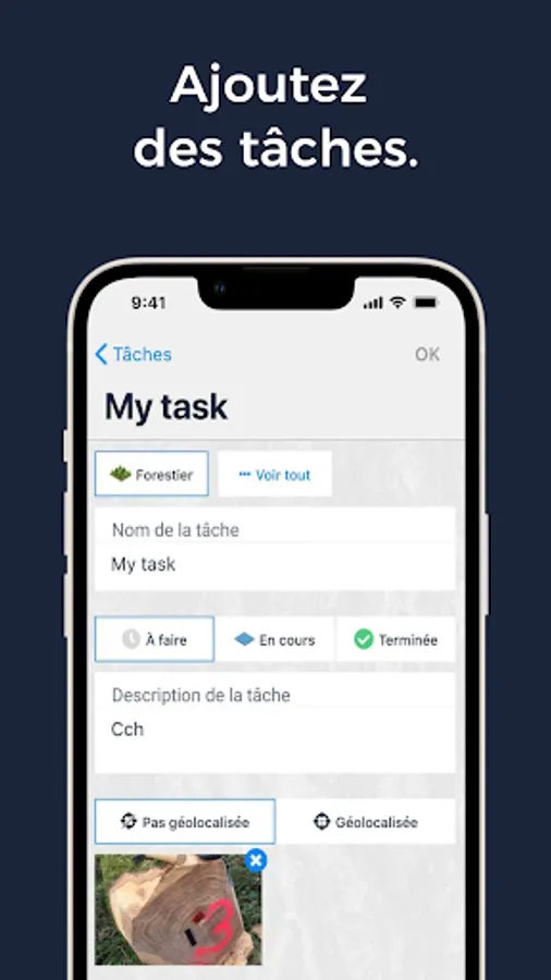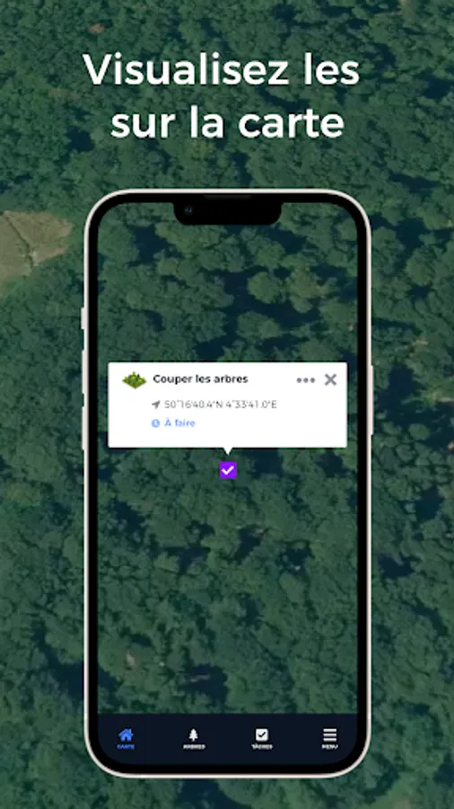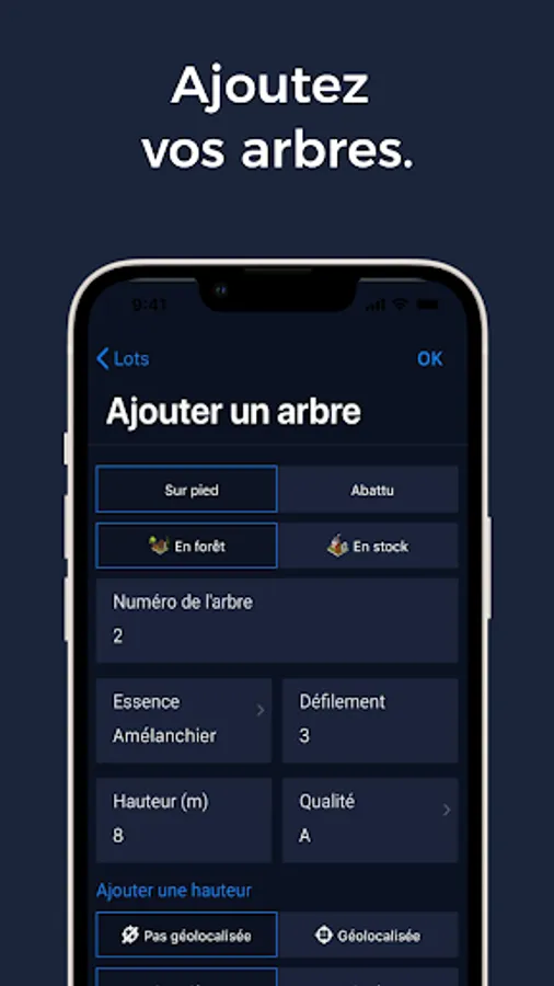 Toujours dans votre poche, l’application mobile Timbtrack vous permet en quelques clics de saisir vos mesures d’arbres, les géoréférencer et les photographier, de planifier vos opérations de terrain et de les localiser et d’avoir un suivi cartographique de vos relevés.
