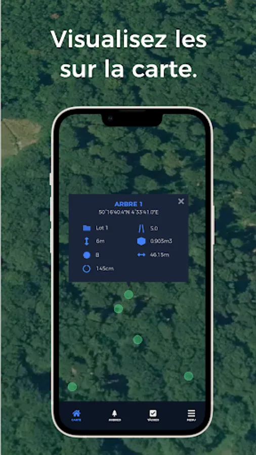 cette application vous servira gratuitement a prendre les différentes mesures de vos domaines, parcelles et arbres, tel que :