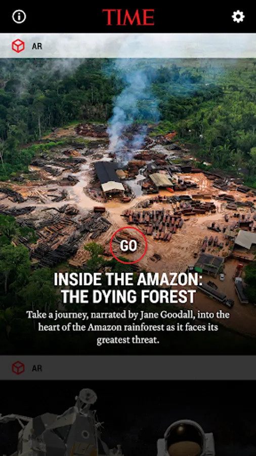 "The TIME Immersive app brings TIME stories to life before your eyes using the power of augmented reality and virtual reality. From the surface of the moon to the heart of the Amazon rain forest, you experience journalism like never before. We’ll be adding new TIME Immersive experiences in the future, so be sure to check back for updates soon.