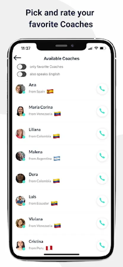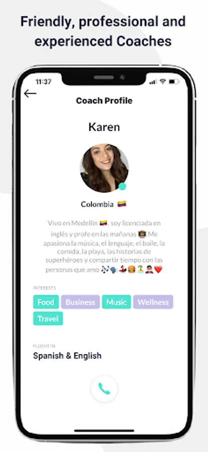 Students have instant access to one-on-one interpersonal practice with handpicked Spanish Coaches at any time – from anywhere – through the app. Our Coaches are always excited to talk to you :)