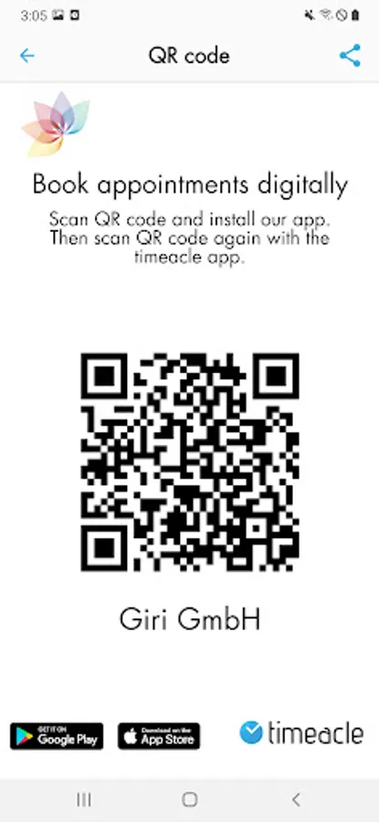 - To inform your customers, the app allows you to print a QR code. Or share this information from within the app.