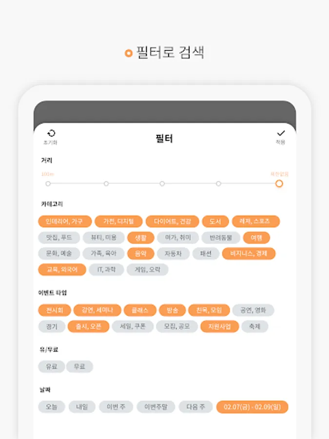 My location, interests, free/free, etc... with various filter conditions