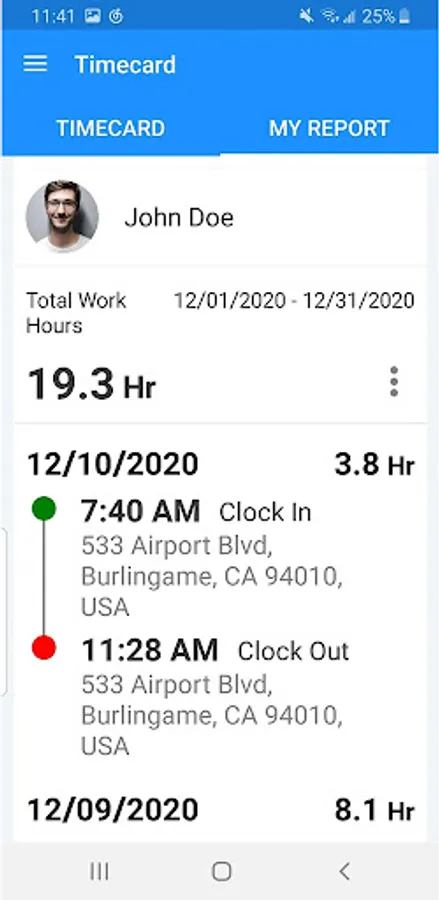 The report feature associated with the timecard shows the accurate work hours for one month and offers a detailed report for each timesheet. Users can also filter the desired date or duration to see their work hours, work location, detailed log times, etc. Easily track your work hours, analyze, and export them.