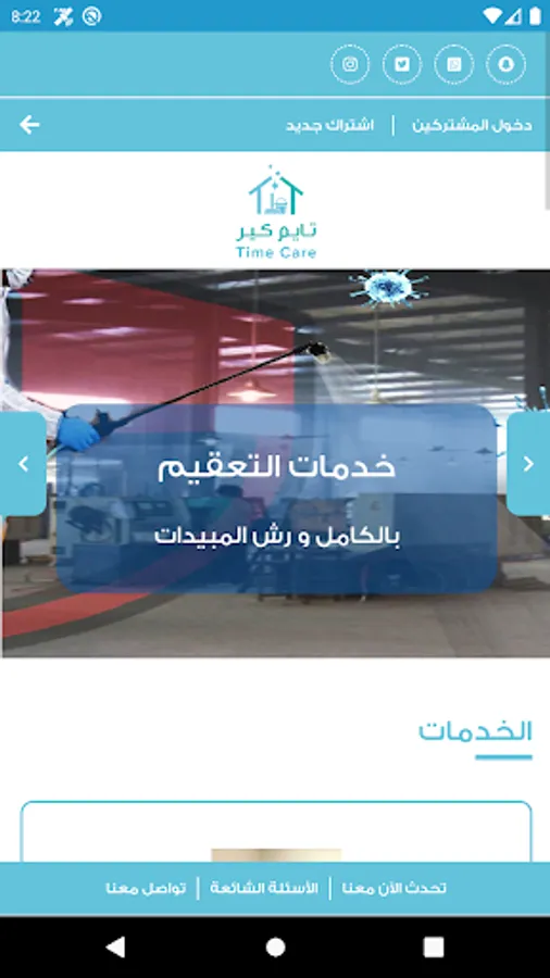 Now the Time Care application has been created for Nadha so that the customer can browse our services and request the services he wants through the application in a faster and easier way.