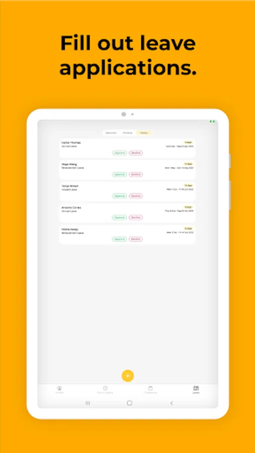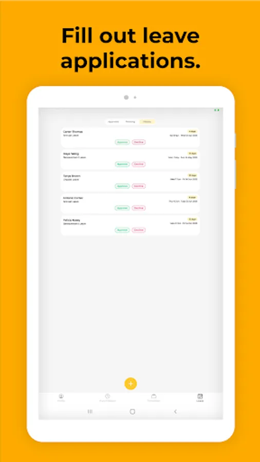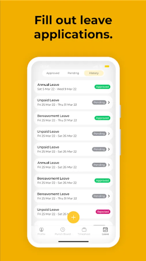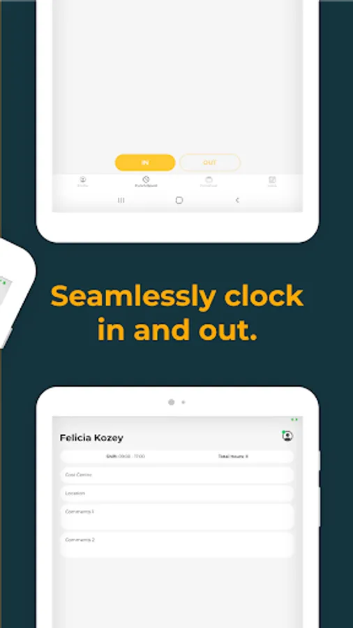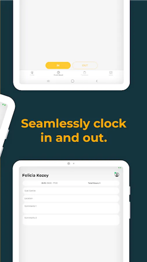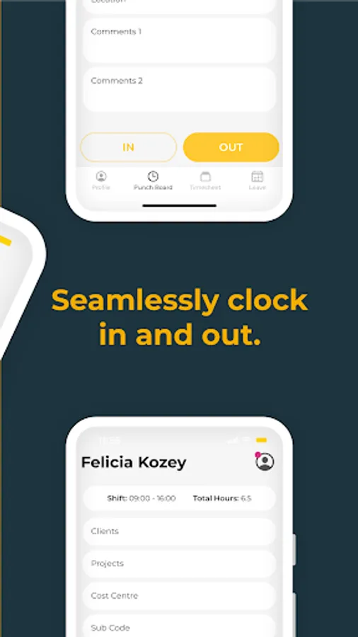 Staff can leave notes and provide images when clocking time and apply for leave within the app.