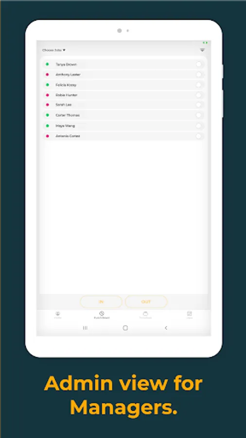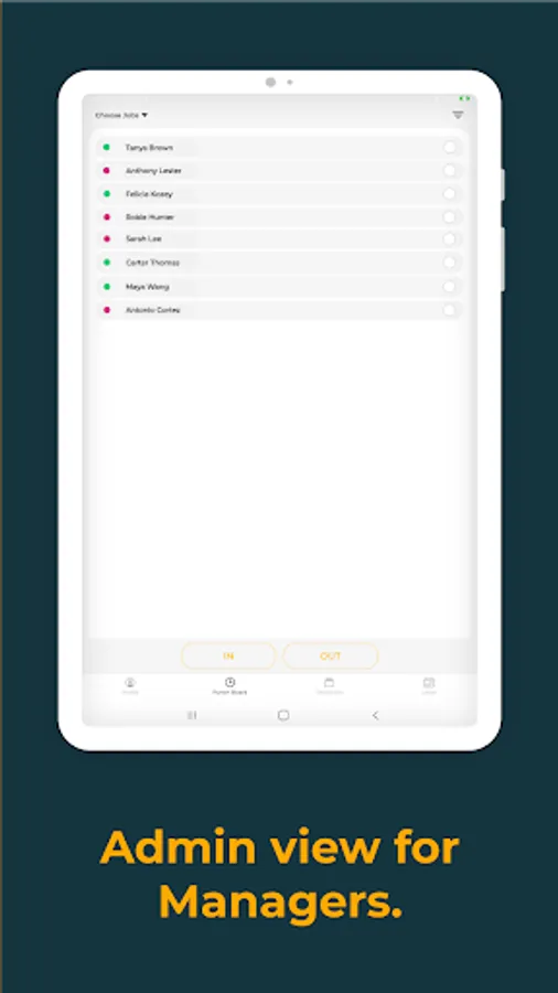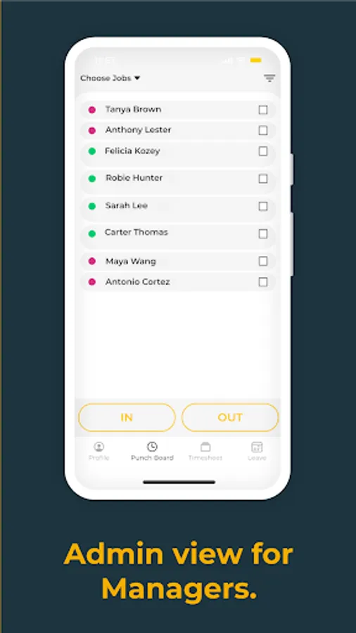 Managers can manually add + adjust timesheets and view the live clock in status of all their staff.