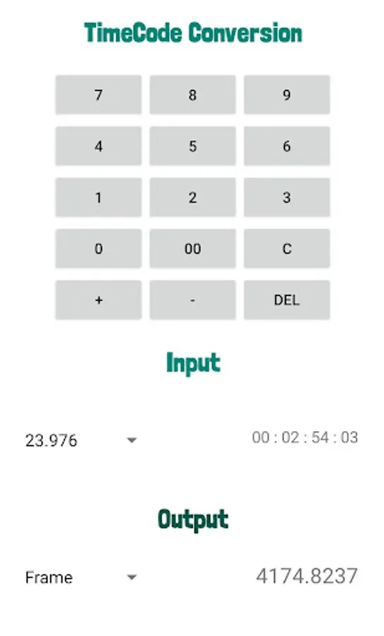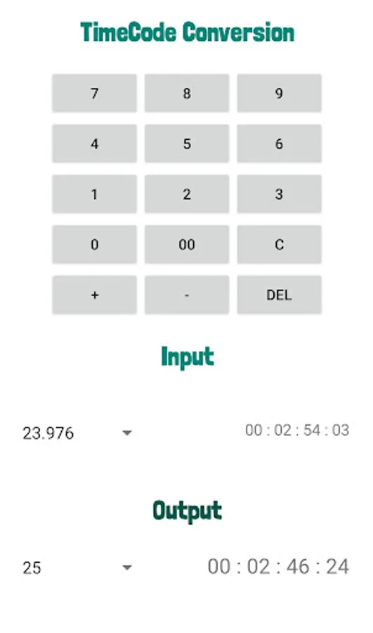 Convert your timecode from a framerate to another. Useful for film editing. And at the end, you can copy and paste your result!