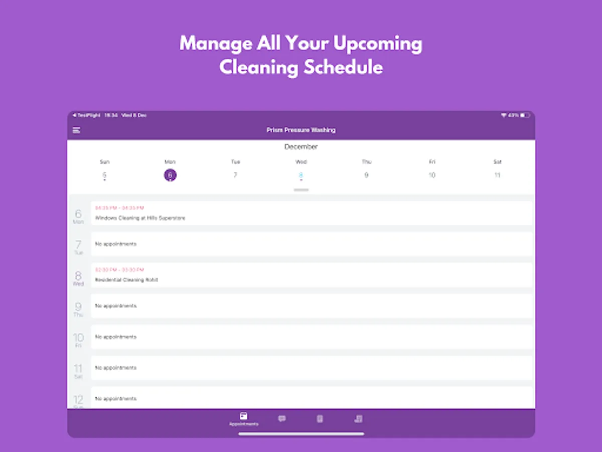 Manage your bookings, make changes, download invoices and chat with cleaning business manager from customer app.