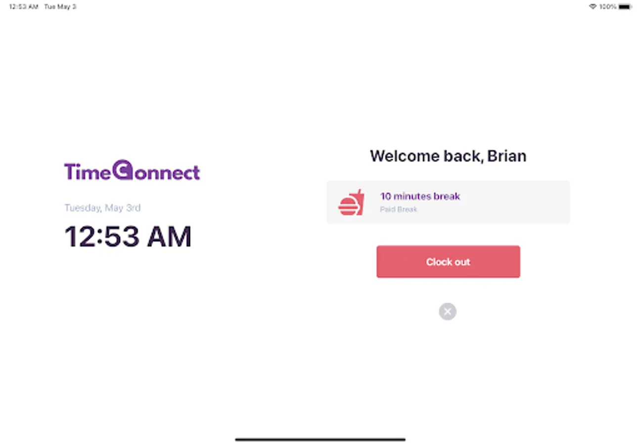 TimeConnect Kiosk app helps your employees manage their timesheets from your company device. All clock in, breaks, and clock out are synced on your TimeConnect dashboard and employee application so you and your employee can review daily earnings.