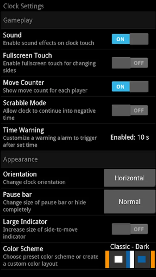•Dynamic time-bar displays each player's relative time remaining at a glance - also acts as a pause button. The time-bar can be hidden.