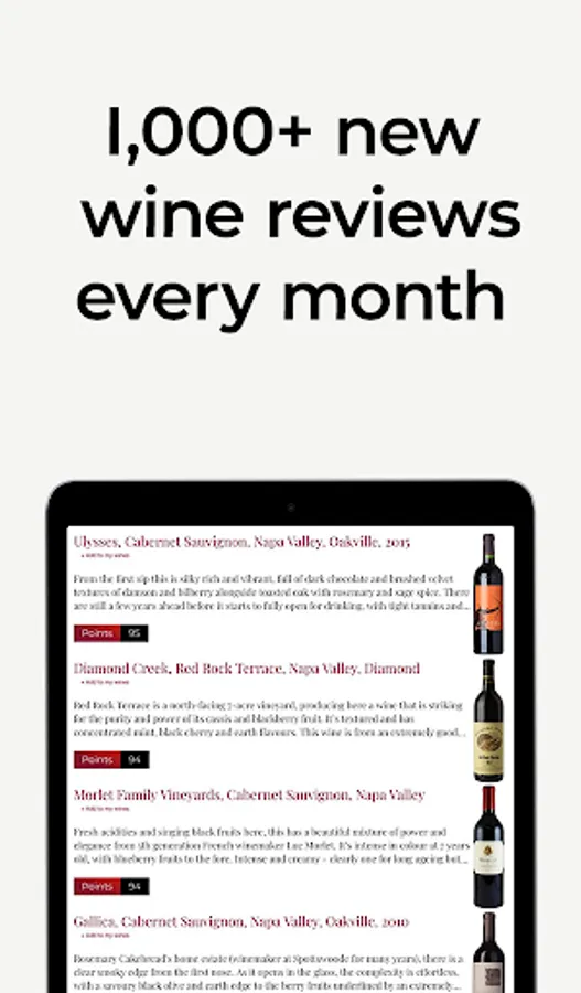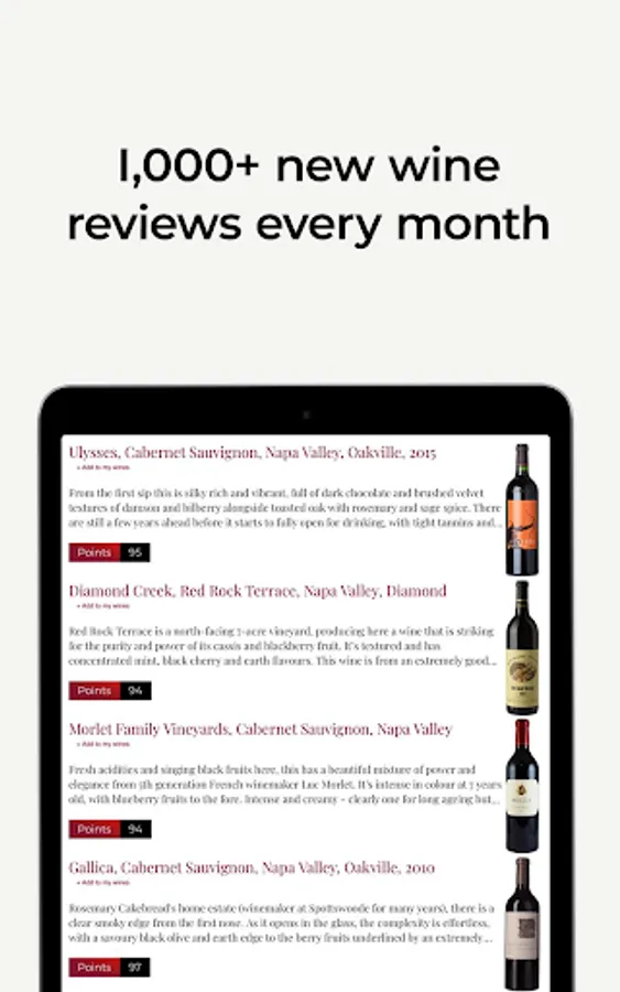 Enjoy access to over 1,000 new tasting notes and scores each month, what's more our whole wine database is compatible with cellartracker.com