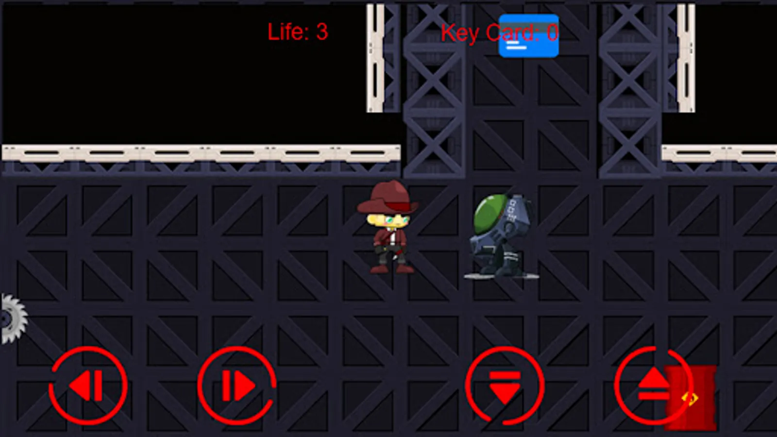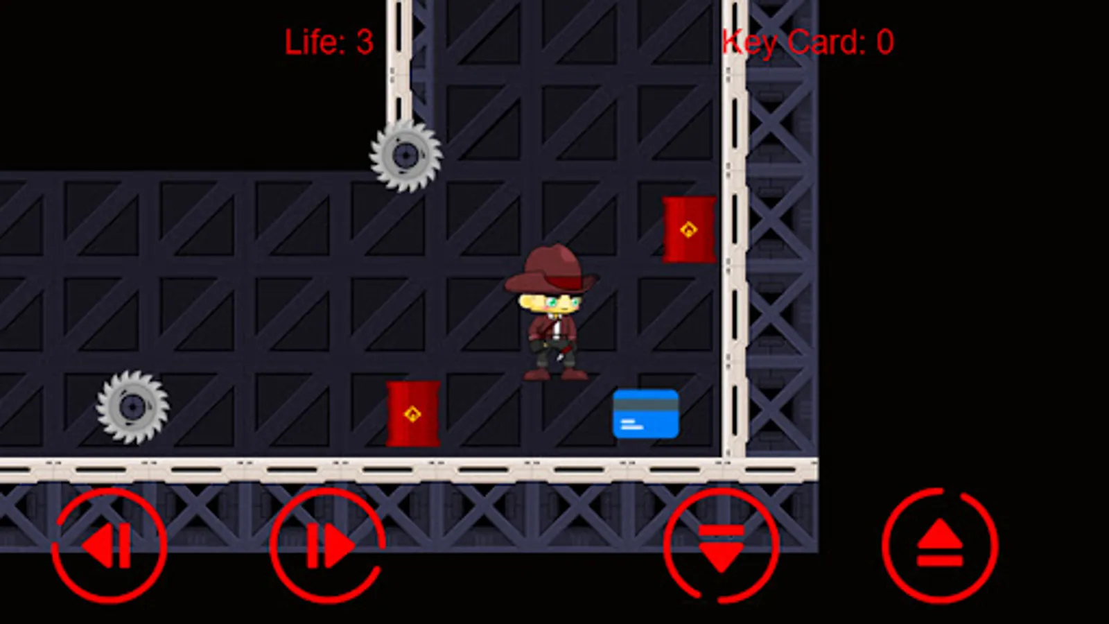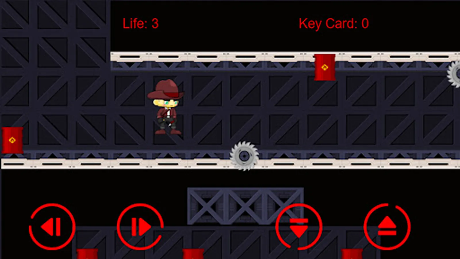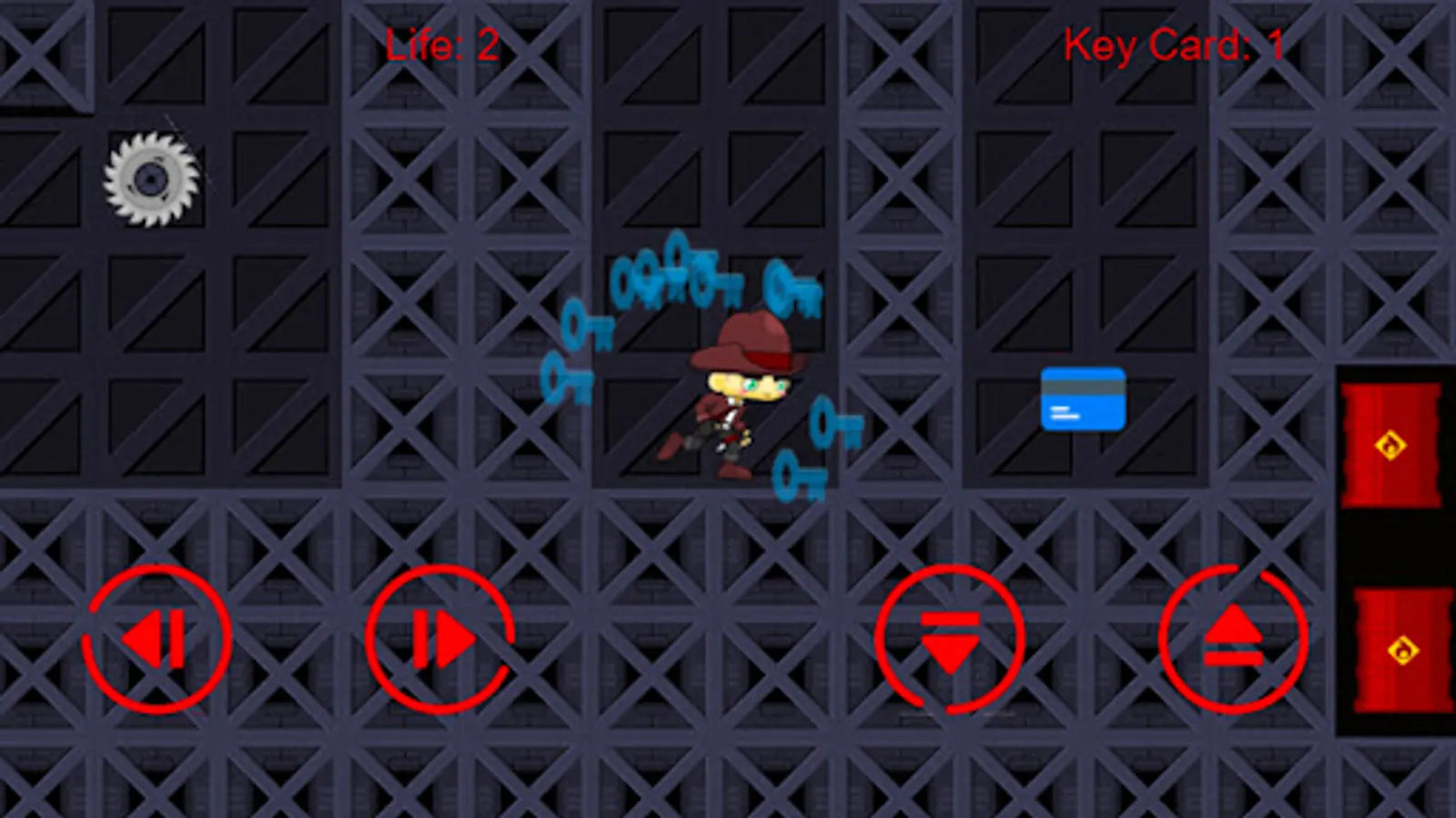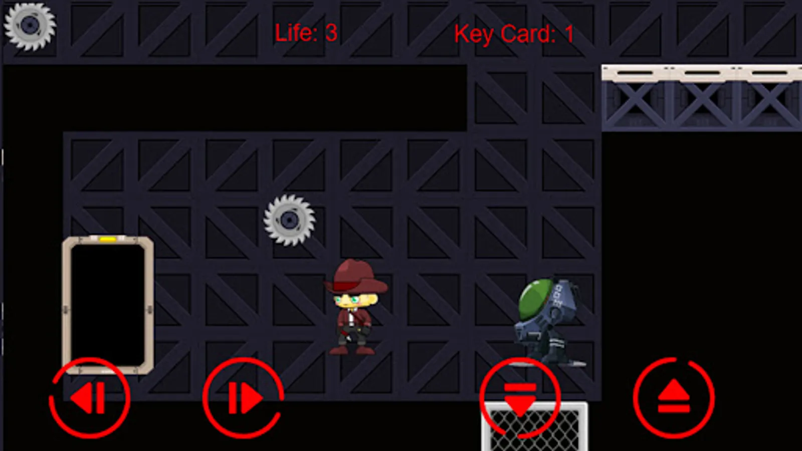 Tap the arrows right, left, up and down to control the player's movements. You have to find the keycard first so you can open the door to the next level. Each level up will be more and more obstacles. You only have 3 lives to make the most of it.