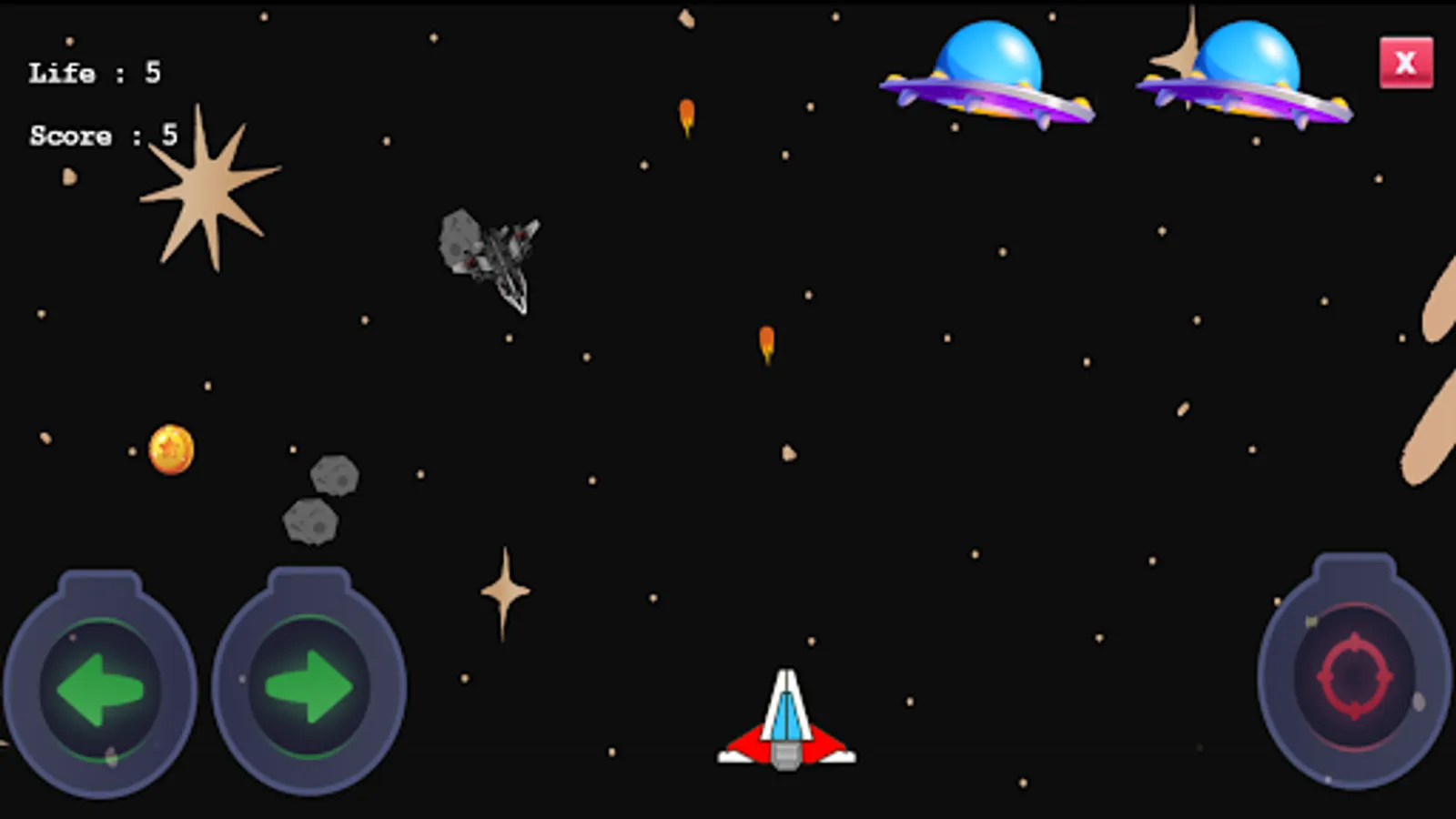This is a shooter game where you have to shoot down enemy planes, alien ships, and aliens. You can earn points and get more lives.