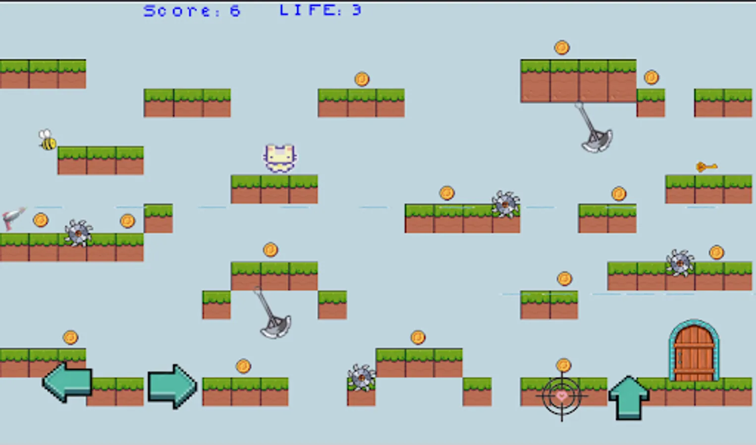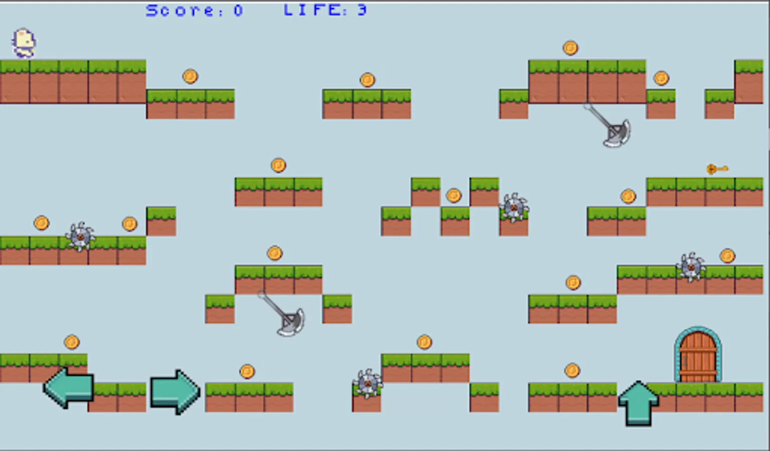 Tap the button to move right/left/jump, and collect the coin. Avoid the spike as you move, and touch the door as your final destination. Finish as fast as you can!