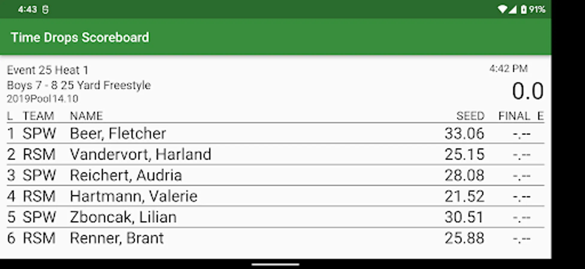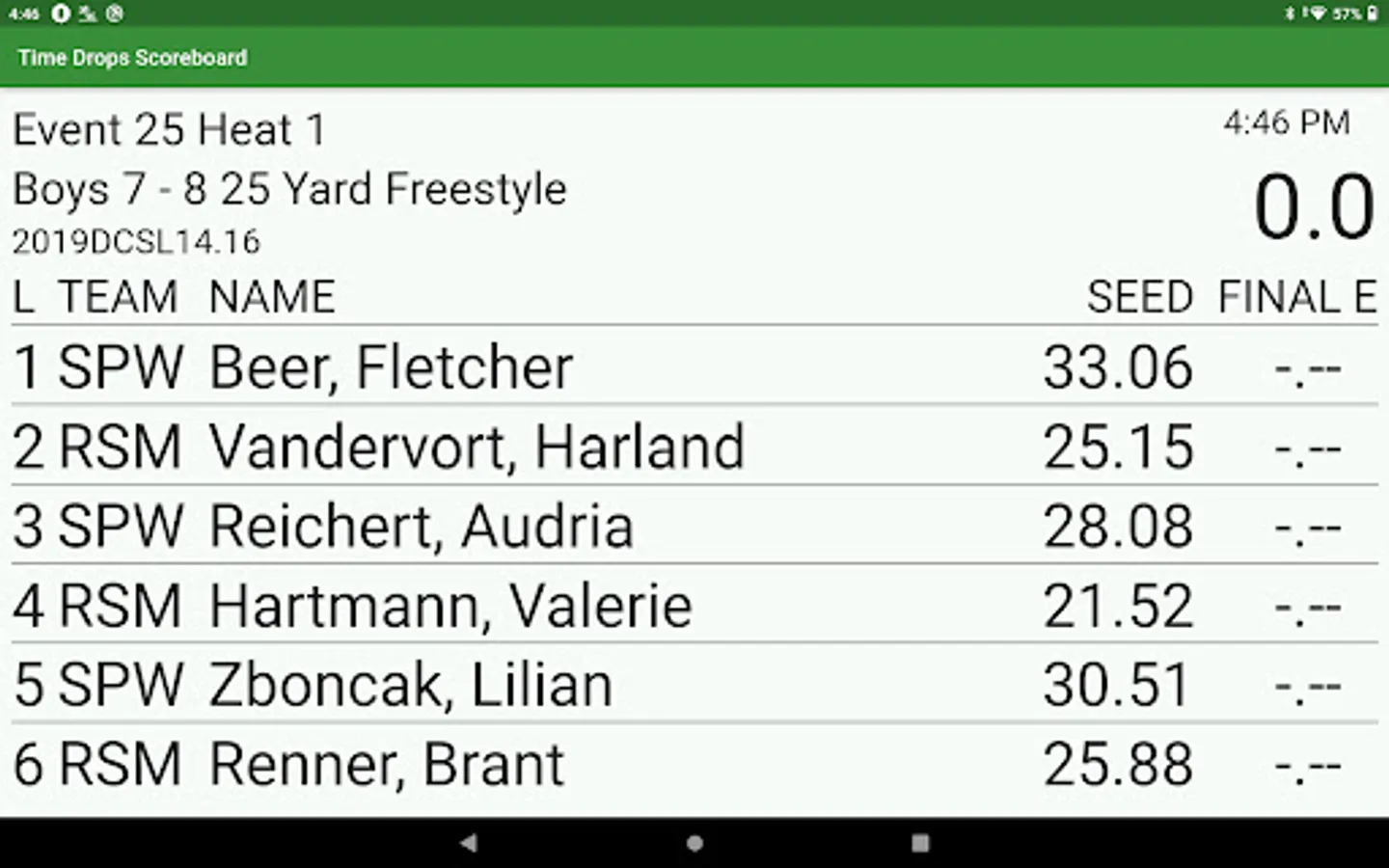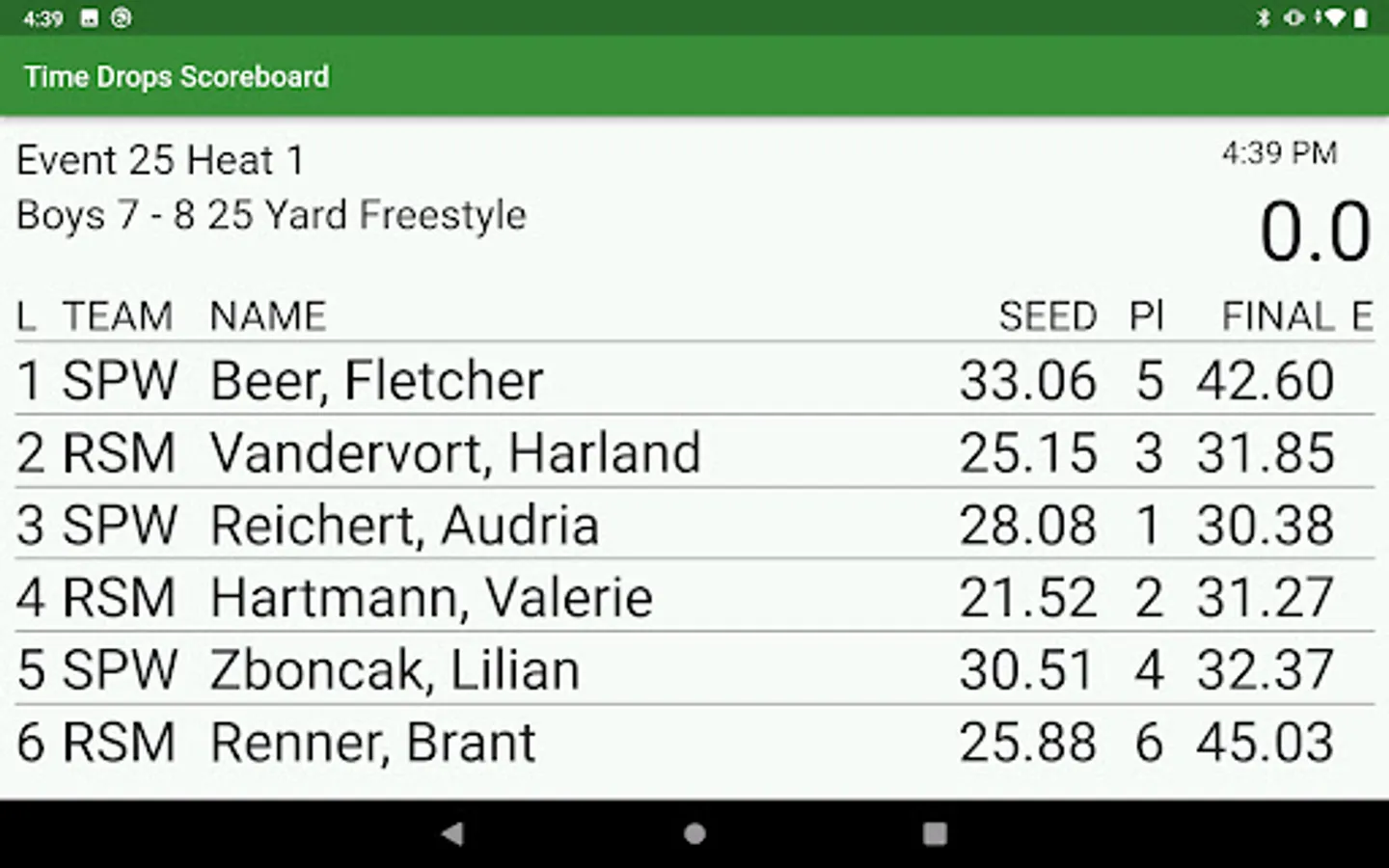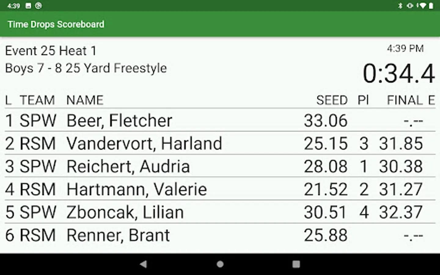 This app works together with the Time Drops wireless swim timing system. When launched, the app will display a basic pace clock until it can connect to the Time Drops timing console on the local network or through the cloud