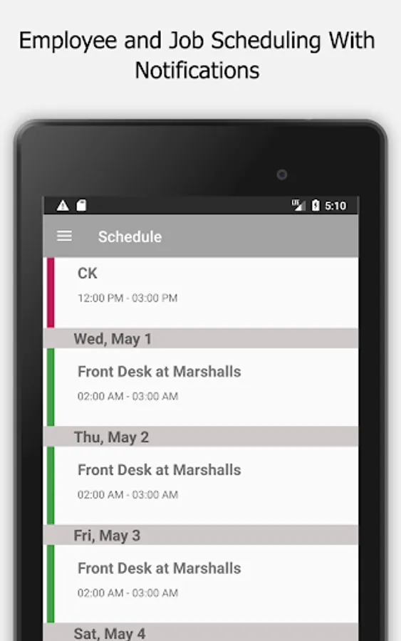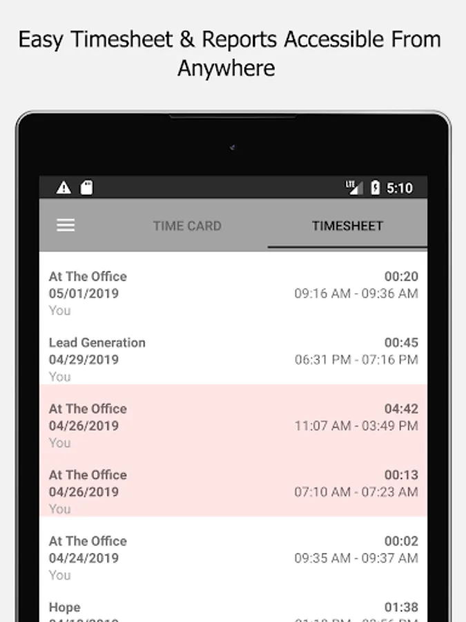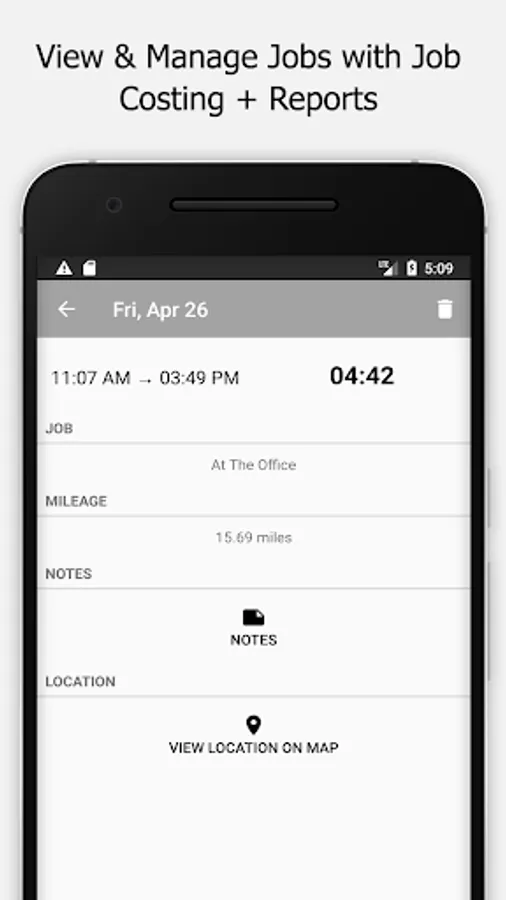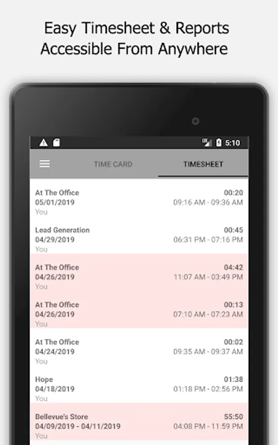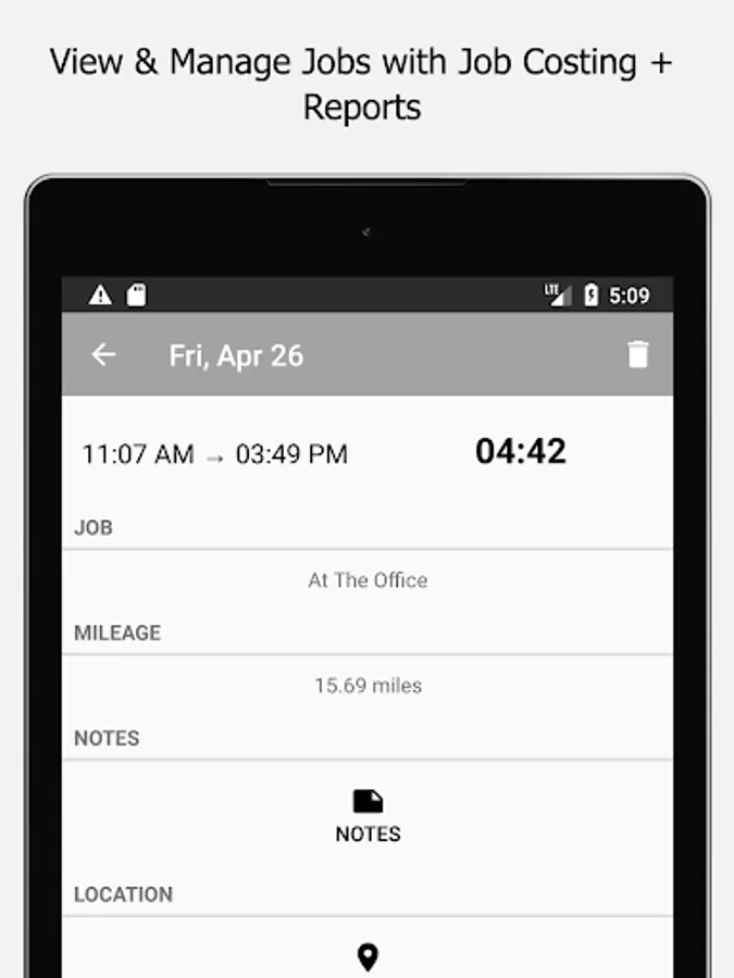 The app allows users/employees to clock in and out of a job and, enter job notes. Users can view all their time sheets as well in the mobile app. Managers can manage timesheets on the go as well.