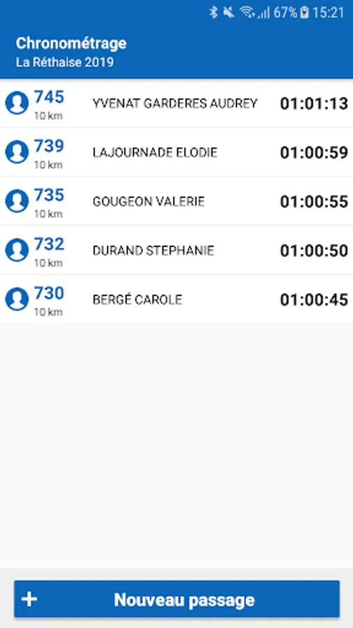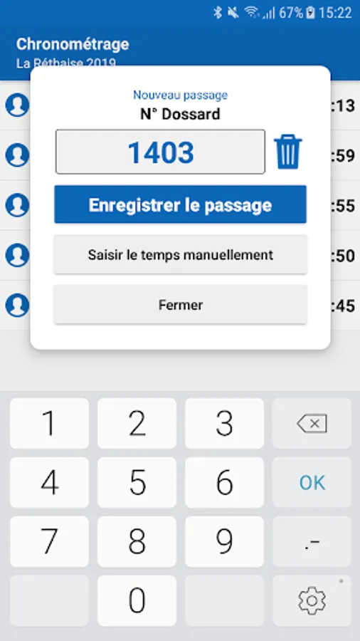 The application works in partnership with the registration service njuko, the European leader in online registrations, and Time'inlive, a pioneer of live results applications. In one click, import all your races and all your Global Timing subscribers and time your races. No training needed! You type the bib numbers as they arrive and you're done.