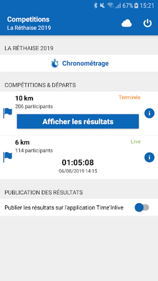 - Broadcast results on the Internet in real time on the application TimeIn'Live