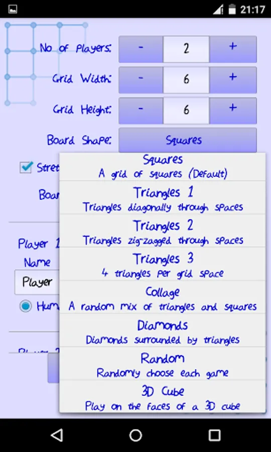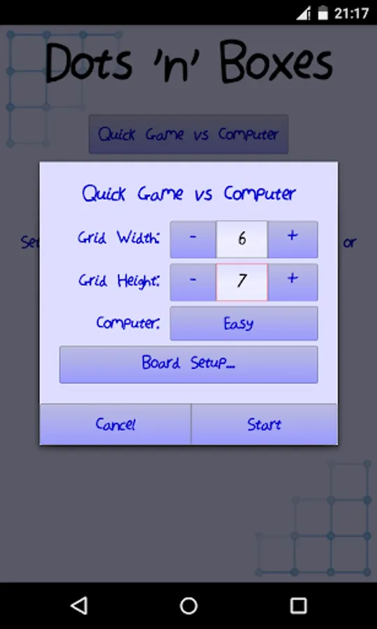 Set dots and boxes to randomly fill in some lines or squares automatically before the game starts with the Board Options setting
