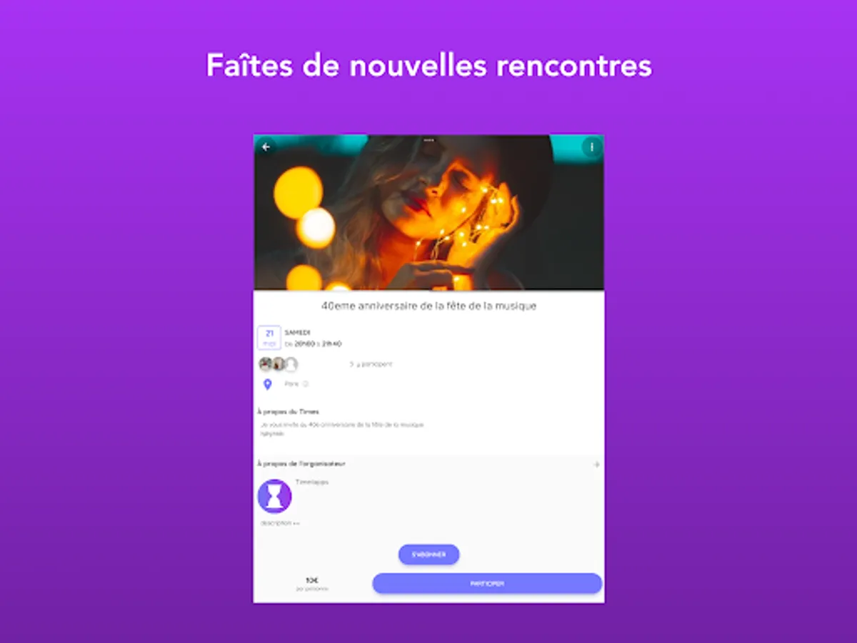 In the age of social networks and online games, our mission is to rediscover the pleasure of meeting and sharing in real life. We want to create a community of trust within Timelapps, so that you can live unforgettable experiences.