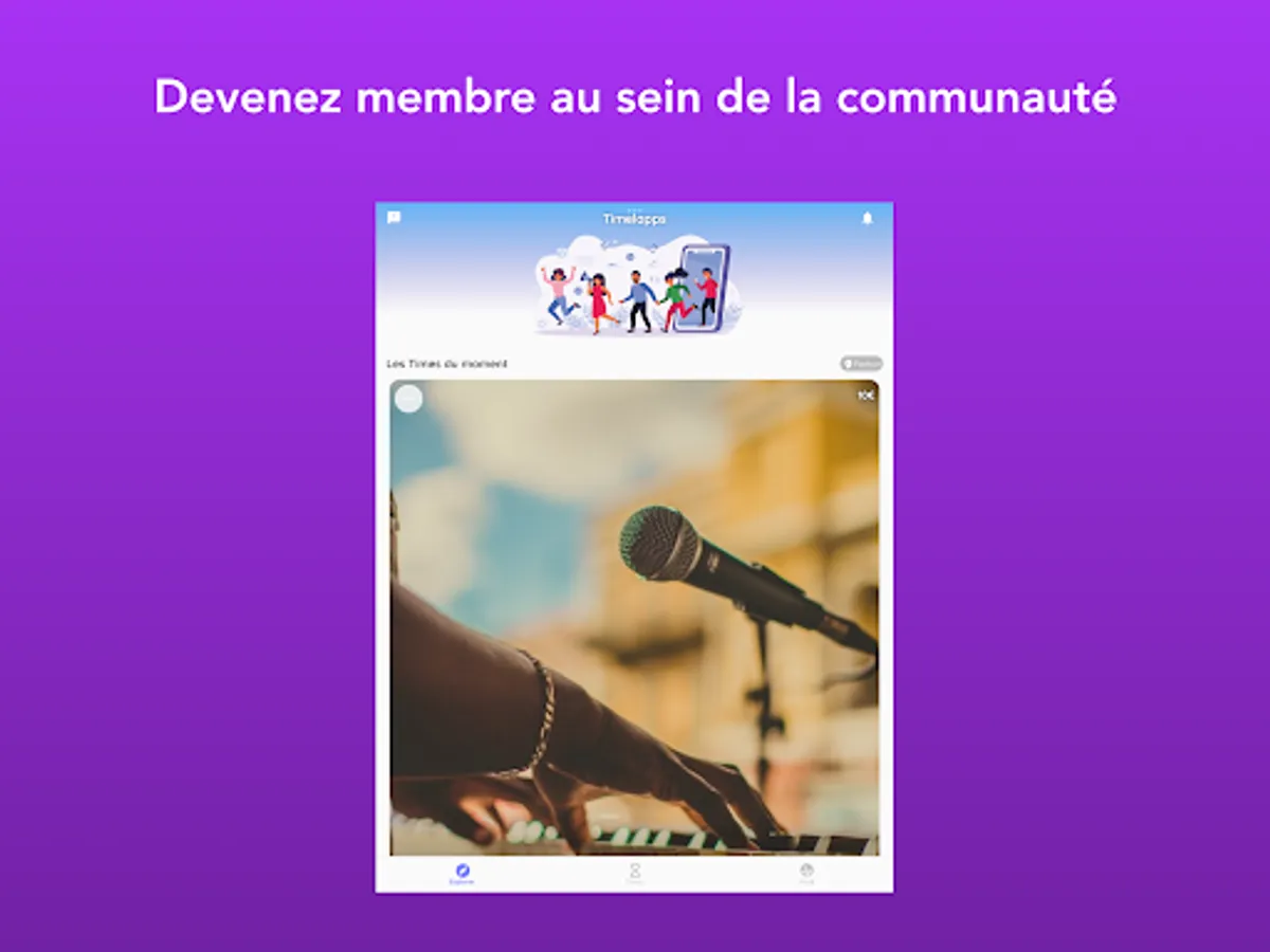 With Timelapps: share experiences, meet new people and discover the unlimited world of Times.