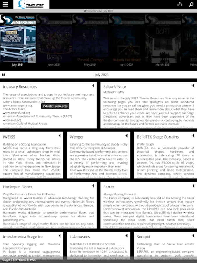 Stage Directions Magazine offers practical guidance for all aspects of the theatre community. We cover theatre for people making it, with articles about acting, playwriting, lighting and sound design, sets, props and much more. No matter what your talent is, we’ll help you improve it. Our writers are professionals in their individual fields, they know the challenges and share their techniques to ensure your production goes perfectly. Each month you can easily download the latest or past editions of the magazine all right within the application.