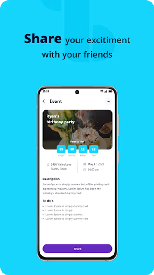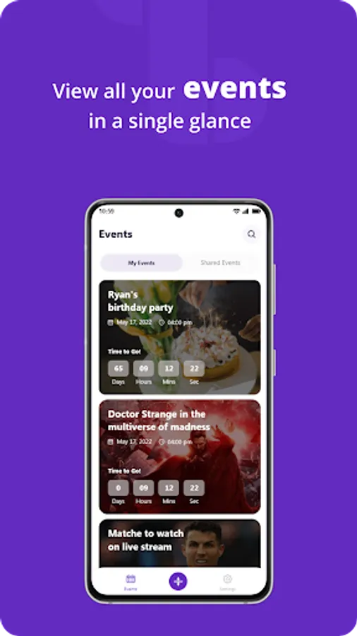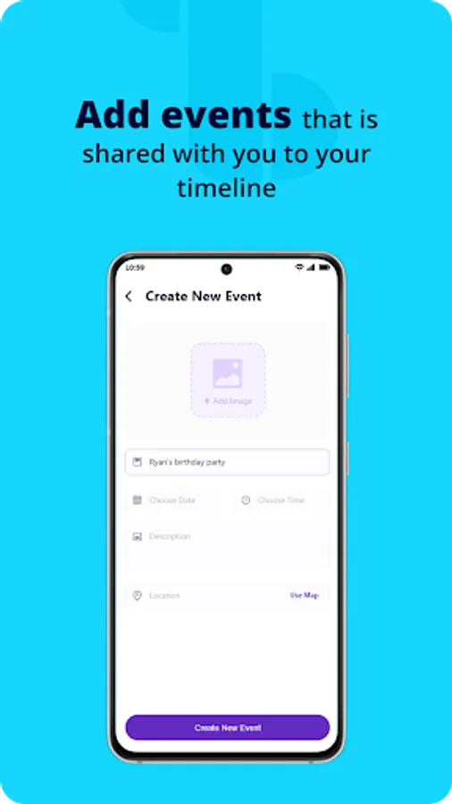 Create a countdown to your wedding day or a birthday party. You can share this excitement with others. You can also add events created by your friends by adding them to your timeline.