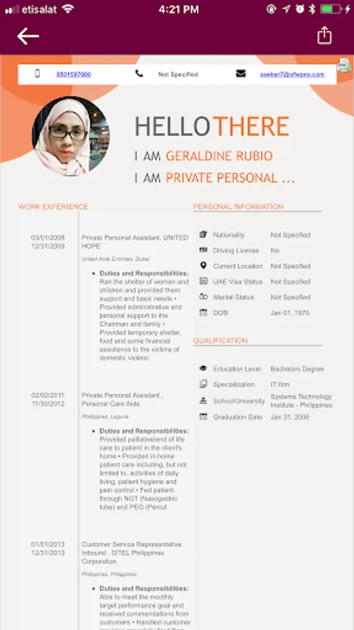 5. Job-seekers can also SHARE their OFWpro profile on all social media platform such as Facebook, Twitter, WhatsApp, etc. to increase their chances of getting hired fast.