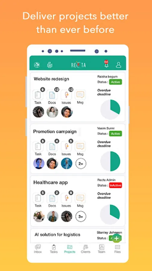 Recta enables you to easily communicate, assign and manage tasks, track performance and hit your deadlines.