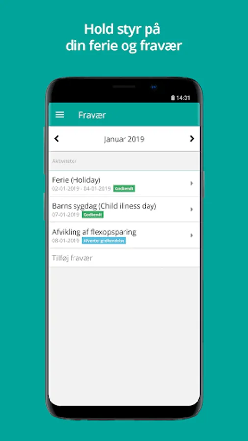 Here it is possible to add and request absences directly in the app. You easily get an overview of your absence and have the opportunity to manage it.