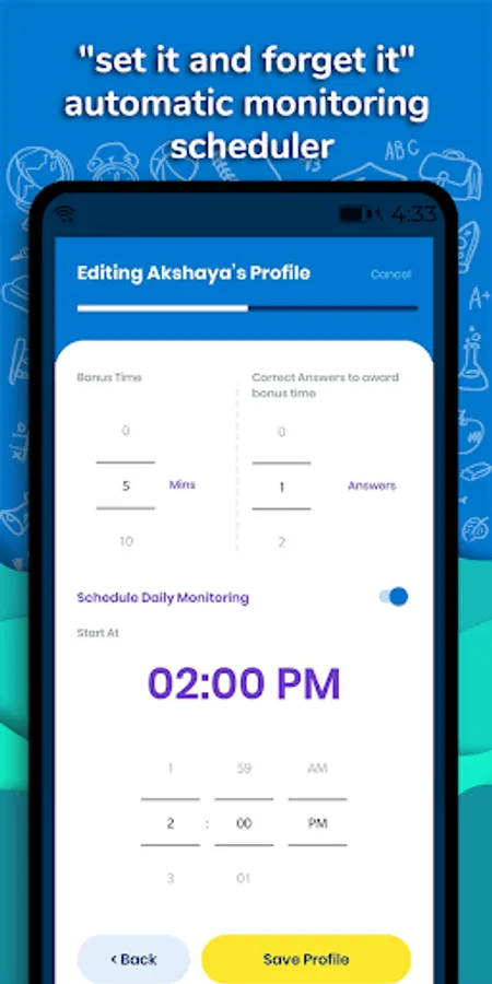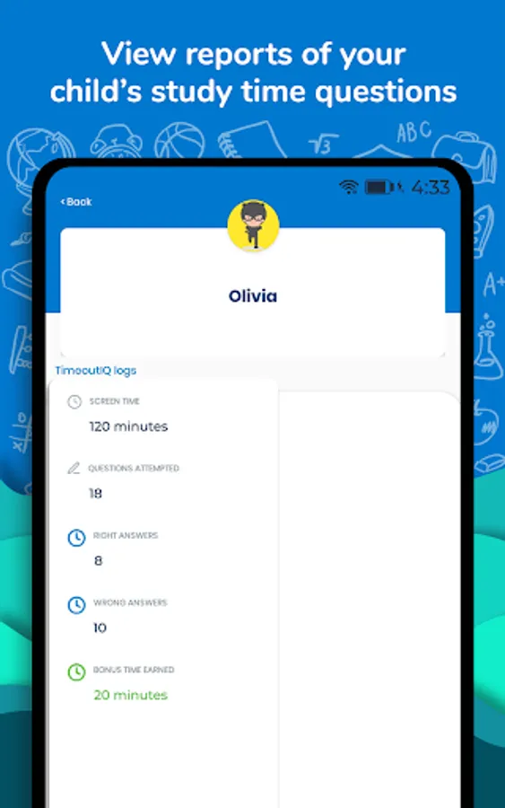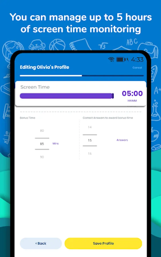 • Is your child acing all the questions/challenges she's asked? Good for her. Must be getting her smarts from her parents!. Go ahead and award her with bonus screen time. Set the number of answers to get right and the amount of bonus time with the flick of your thumb.