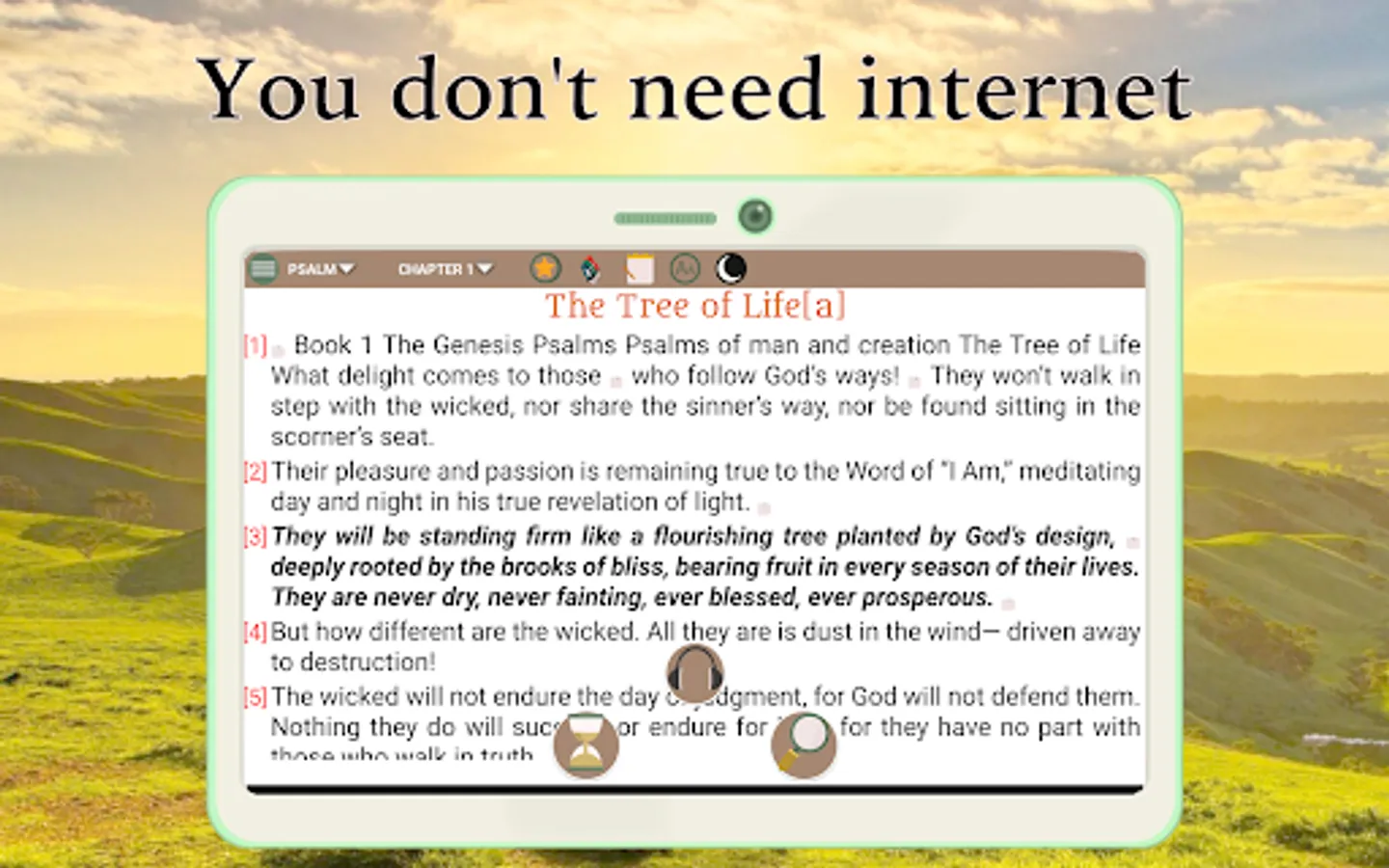 New Testament with Psalms, Proverbs, and Song of Songs is translated from Hebrew, Greek, and Aramaic texts by Dr. Brian Simmons. Dr. Brian Simmons is known as a passionate lover of God. After a dramatic conversion to Christ, Brian knew that God was calling him to go to the unreached people of the world and present the gospel of God’s grace to all who would listen. With his wife, Candice, and their three children, he spent nearly eight years in the tropical rain forest of the Darien Province of Panama as a church planter, translator, and consultant. Brian was involved in the Paya-Kuna New Testament translation project. He studied linguistics and Bible translation principles with New Tribes Mission. After their ministry in the jungle, Brian was instrumental in planting a thriving church in New England (USA) and now travels full-time as a speaker and Bible teacher. He has been happily married to Candice since 1971 and boasts regularly of his three children and eight grandchildren. The message of God’s story is timeless; the Word of God doesn’t change. But the methods by which that story is communicated should be timely; the vessels that steward God’s Word can and should change. One of those timely methods is Bible translation. Bible translations are both a gift and a problem. They give us the words God spoke through his servants, but words can be poor containers for revelation because they leak! The meanings of words change from one generation to the next. Meaning is influenced by culture, background, and many other details. Just imagine how differently the Hebrew authors of the Old Testament saw the world three thousand years ago from the way we see it today! Characteristics of the application The application is easy to use and allows you to listen and read the sacred scriptures quickly and easily, without the need of an internet connection. You can pause the playback of the chapter and listen to it where you left it again and choose the verse wherever you start when reading. The audio playback performed by the application is using the Voice Synthesizer that contains the cellular device or tablet. If the device does not support this functionality, the program will indicate it. Access to the options menu quickly and sensibly. Option to change the text size. Change of reading background of the book. Access to favorite chapters and verses. Search for words in books, chapters and verses. Night mode to facilitate reading and decrease the light of the screen. Notification Daily a verse. You can click on the screen and the lower part will show the name of the book and the chapter, when pressed, the list of books will appear and in the other the chapters that the selected book has. You can select one or several verses of a chapter and mark as a favorite you can also share with your friends the verses in the different social networks. By clicking on the favorite clip, you will see the verses that you marked for quick access. The Search menu will allow you to place a word in a text field and search the entire bible, in the old or new testament. If you specify the search range it may take less time to find matches, but if you select the whole bible it will take longer to Find the results. The configuration will allow you to change the size of the letters and the reading mode (Night and day).