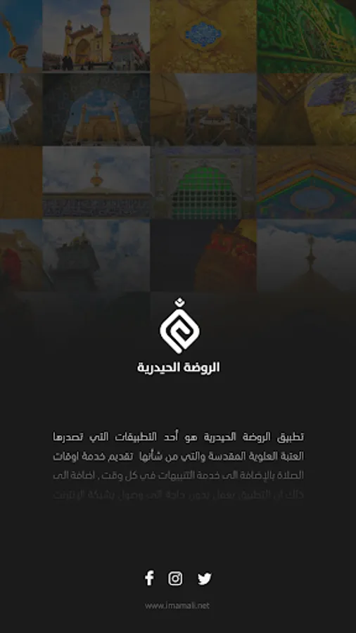 تَطبيقُ الرَّوضةِ الحَيْدَريّةِ مِنْ إنتاجِ شُعبةِ الإعلامِ الالكترونيّ في العَتَبةِ العَلَويّةِ المُقدَّسةِ، وَالذي يَعْمَلُ عَلَى التَّذكيرِ بِمواقيتِ الصَّلاةِ بنحوٍ دقيقٍ جِدّاً، بالإِضافةِ إِلى سَماعِ صَوْتِ الأَذانِ مَع حُلولِ مَوعدِ الصَّلاةِ.